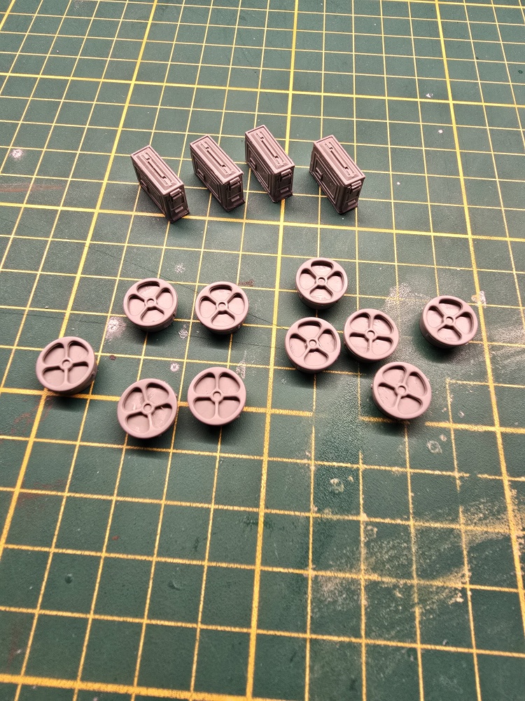 Dann mussten noch ein haufen Fahrzeugteile zusammen gebaut werden . Hier hab ich dann erst einmal das meiste erstellt , um dann alles auf einmal zu Lackieren .
