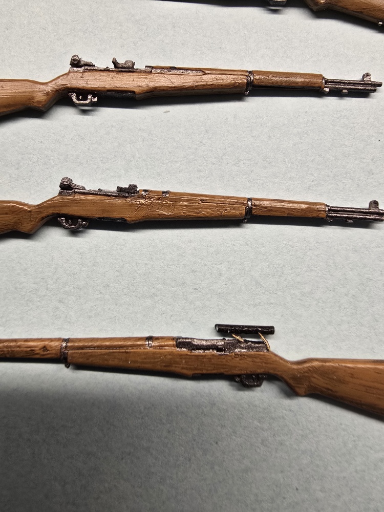 So und dann sollten noch 6 M1 Garand Gewehre gebaut werden . Der Bau war kein Problem .... aber mit der Bemalung hab ich mich echt schwer getan .
