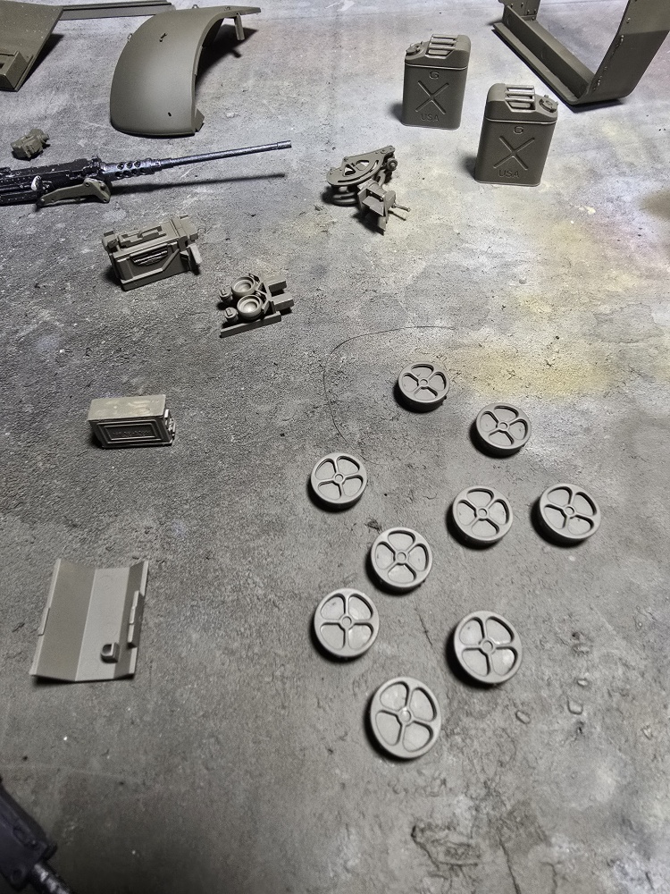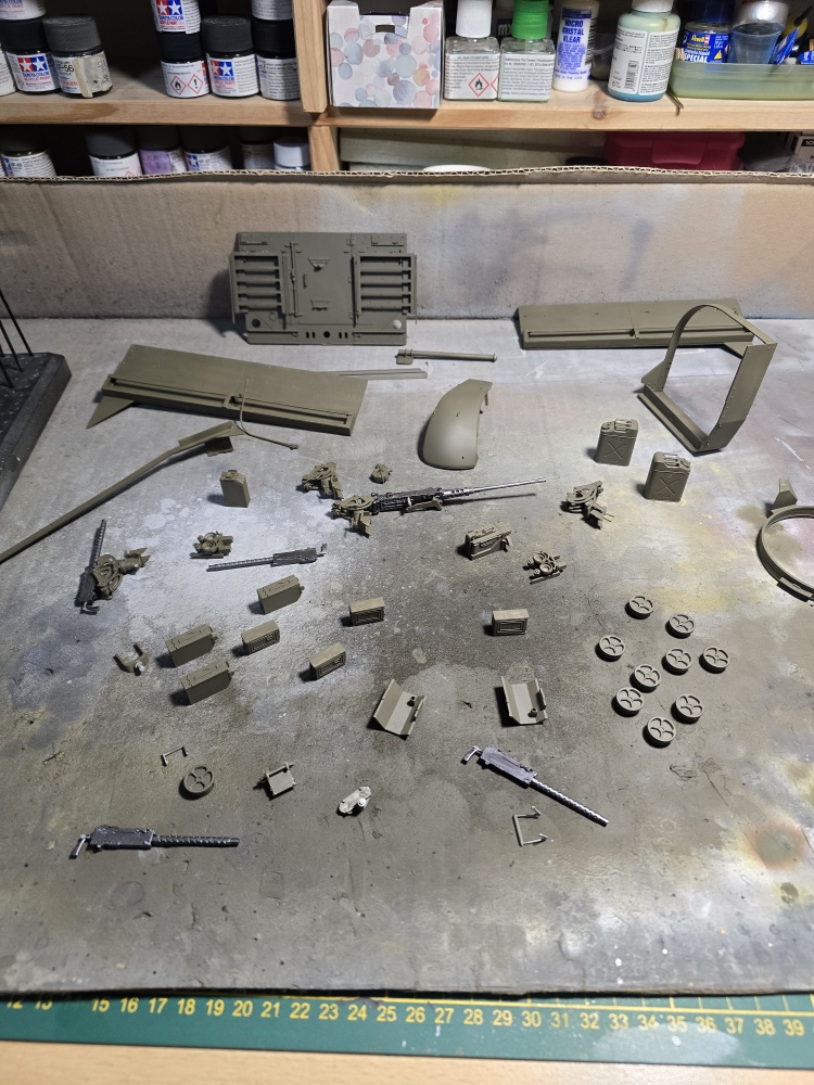 Dann mussten noch ein haufen Fahrzeugteile zusammen gebaut werden . Hier hab ich dann erst einmal das meiste erstellt , um dann alles auf einmal zu Lackieren .