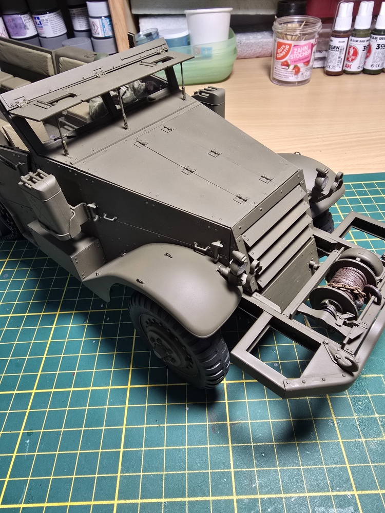 Die Jacke des Fahrers sollte laut Farbschema von AK M42 Uniform Green Ocker Kahki werden ( die Farbe lag dem Figurenset von AK bei )