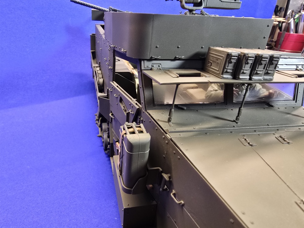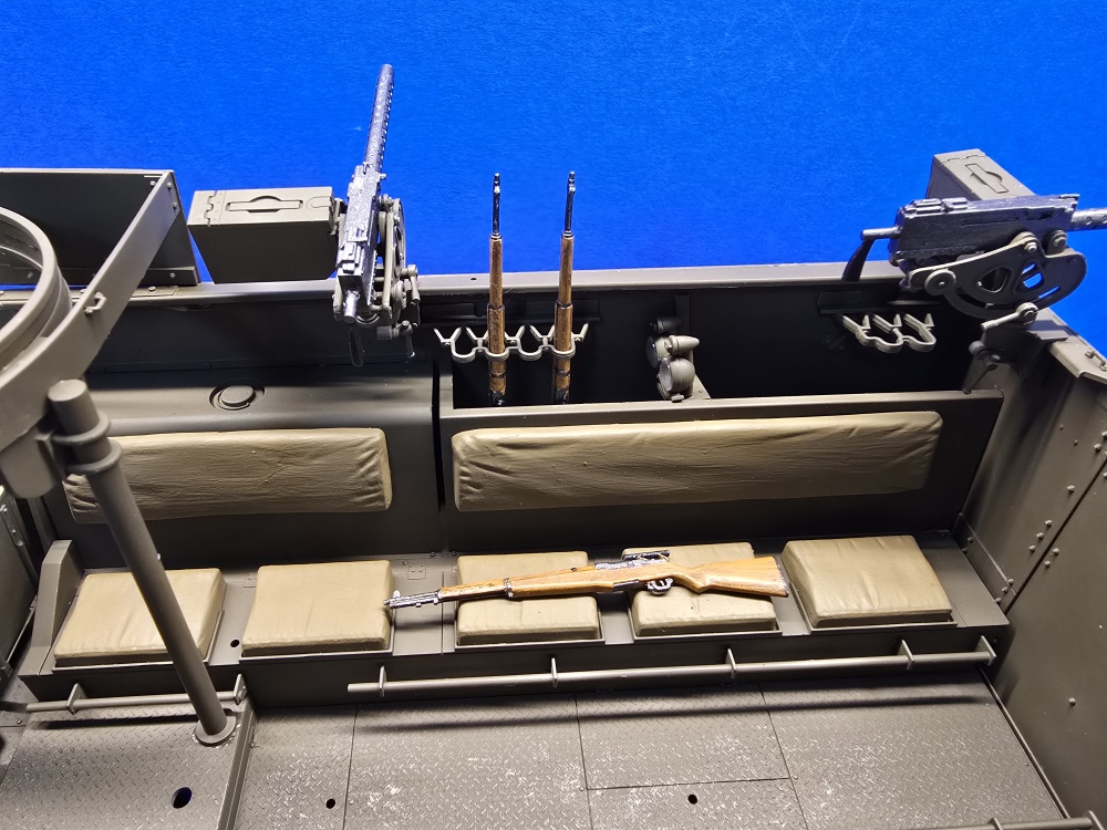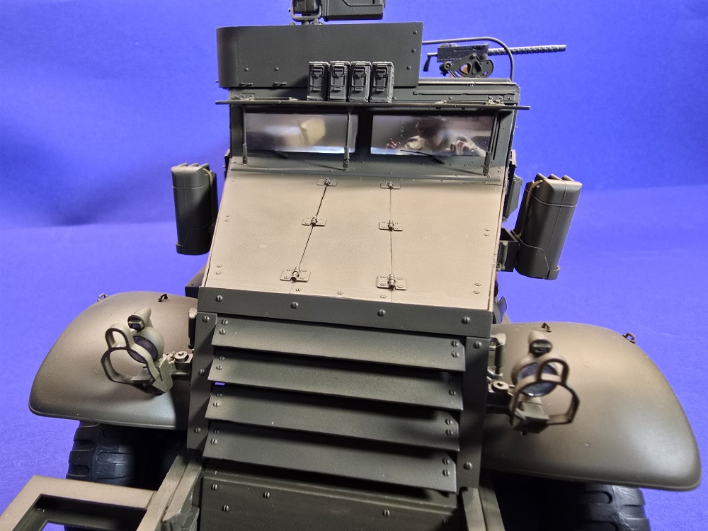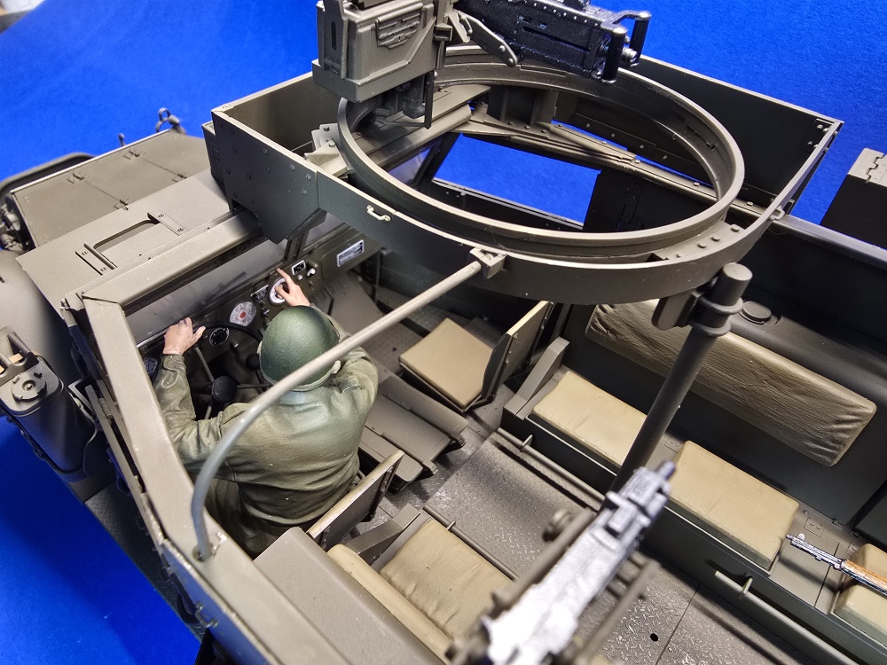 Laut Bauplan muss in die Fahrerkabine auch der Fahrer relativ zu Anfang mit eingebaut werden . Dieser liegt dem Bausatz auch bei . Leider aber nur eine Figur .2 bis 3 wären viel schöner gewesen. Auch hab ich noch nicht wirklich US Soldaten in 1/16 gefunden .