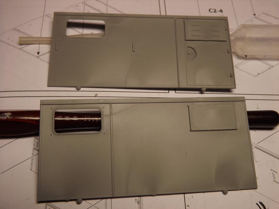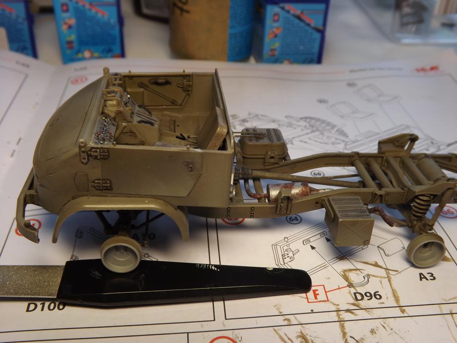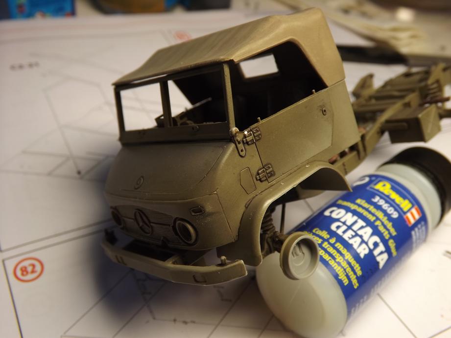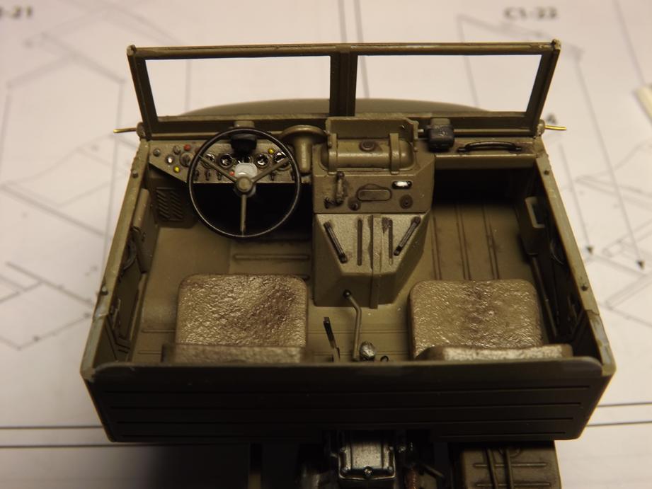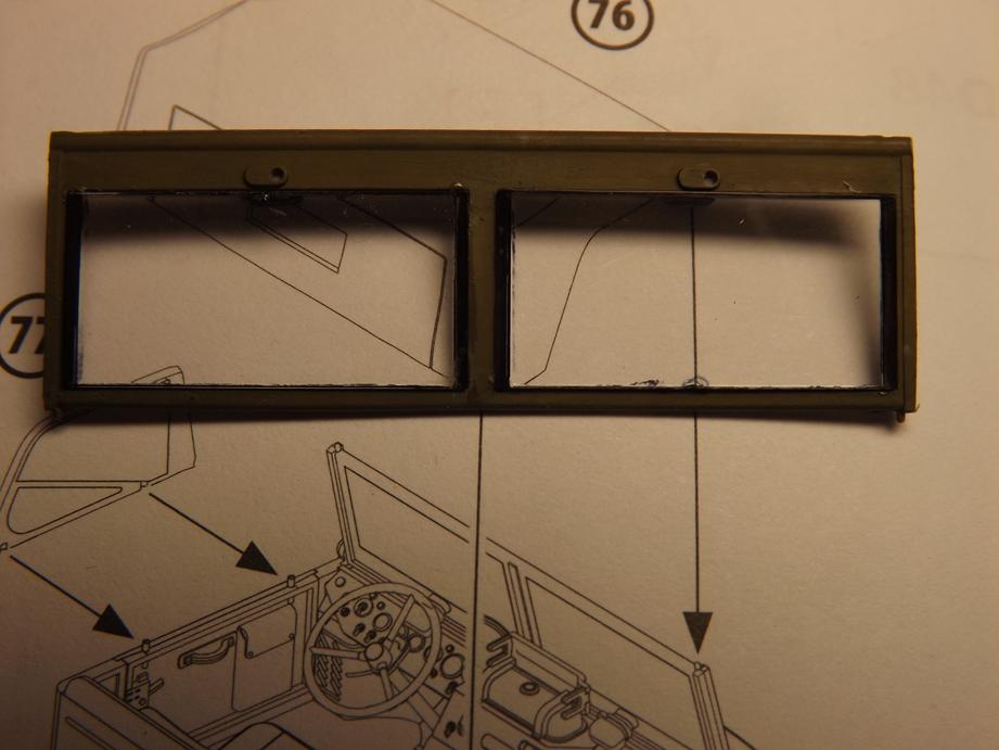 Die Seitenscheiben der Türen, die beim Original aus Metallrahmen, die mit Plane und Folie bezogen sind bestehen, habe ich zwischenzeitlich auch zusammengefügt, bemalt und mit einem Washing versehen. So weit für heute, bis bald.