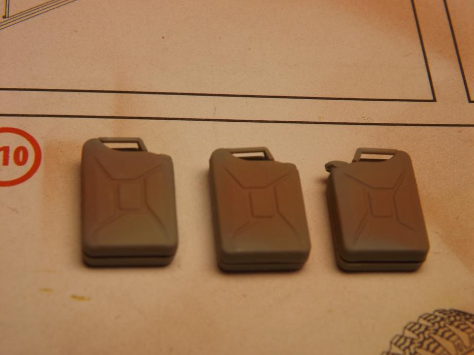 Rostrote Farbe und den Rest des Sandgelb, der sich noch in der Airgun befand, benutzte ich für die Grundierung des Kofferaufbaus. Ebenso behandelte ich die drei Benzinkanister.