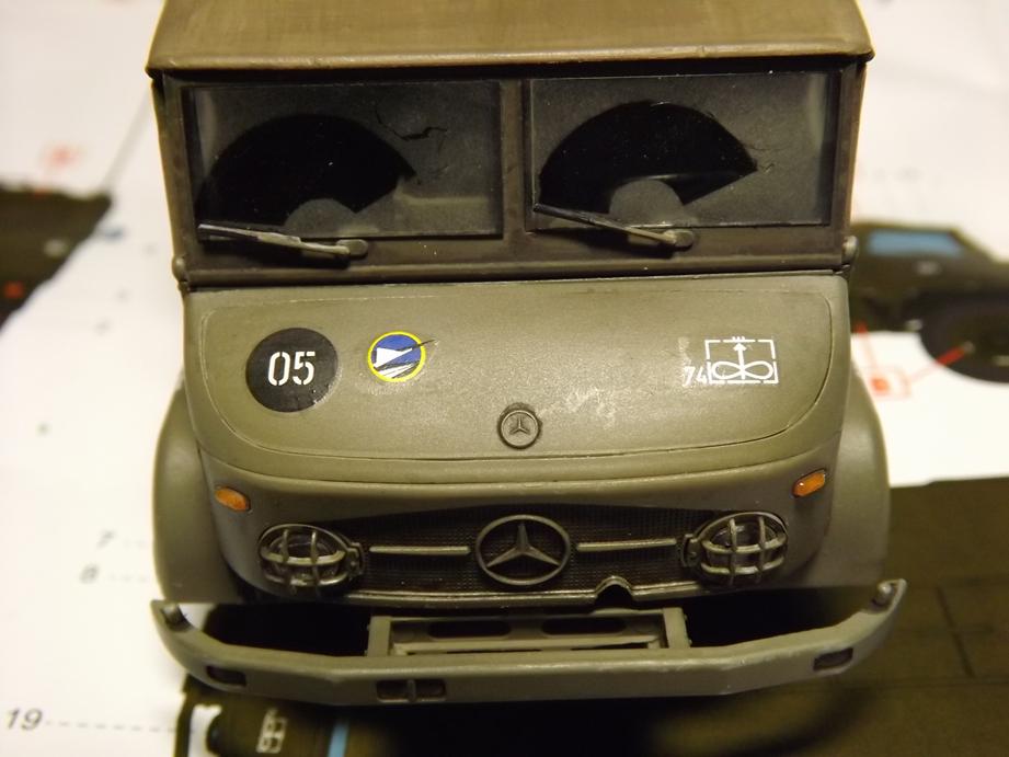 So, bis auf die Peilstangen und die schon vorbereiteten Außenspigel ist der Unimog jetzt fertig. Wenn ich die Stangen besser nachgebaut habe, findet ihr Fotos in der Galerie.