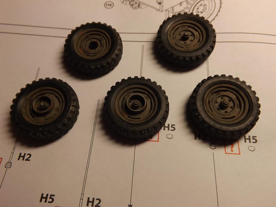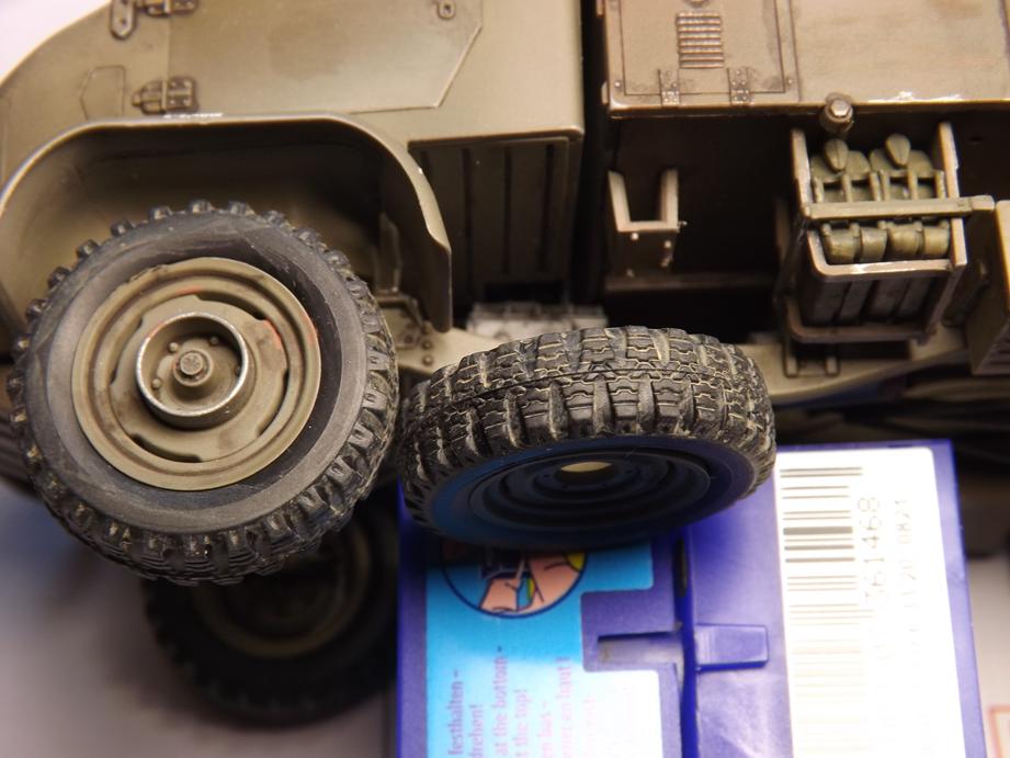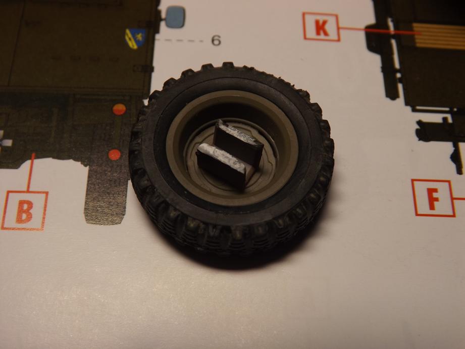 Anschließend stellte ich das ganze Projekt auf feste Füße: die Räder kamen dran. Dem Kit liegen Venylreifen bei. So ganz begeistert bin ich davon nicht