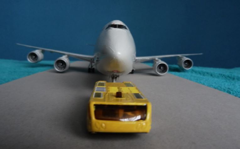 also das Modell finde ich sehr gelungen. Auch das Decal für die CockpitVerglasung passt und schließt das Klarsichtteil an den Kanten sauber ab. In der Tat finde ich den Hintergrund nicht so passend. Das Modell hat zu viel Masse und drückt die Außenkante des Kartons nach oben. Die Motoren an der Innenseite haben auch beim Original wenig Bodenfreiheit. Ist das Flugzeug voll beladen und betankt, wird der größte Teil der Masse über das Hauptfahrwerk in den Boden geleitet. Somit sinkt es auch etwas tiefer ein.