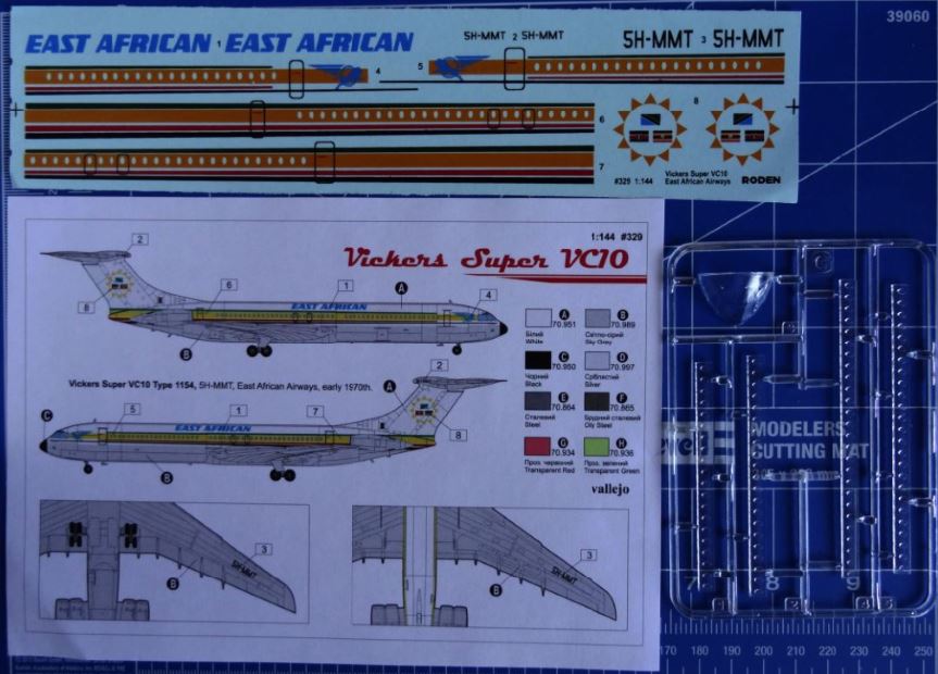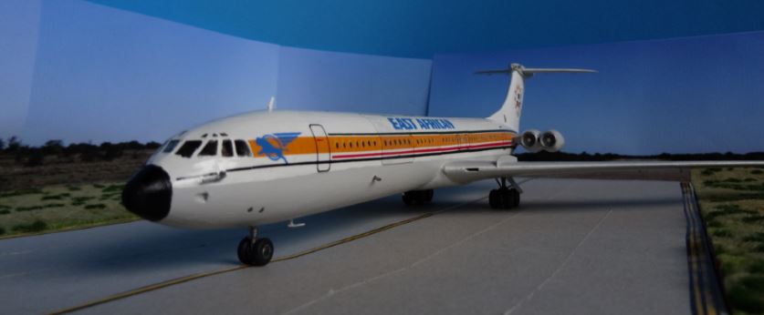 Die im Bausatz dargestellte 5H-MMT wurde im Oktober 1966 ausgeliefert und blieb bis zum Bankrott bei der EAA 1977 im Einsatz. In diesem Jahr wurde sie nach UK zurückgeführt (repossessed),als Transport und Tankflugzeug umgebaut und 1985 von der Royal Airforce als ZA147 "F" inbetriebgenommen. Bis zur Ausserdienststellung 2013 nahm sie an diversen Aktionen und Operationen teil, darunter Nonstopflüge zwischen Brize Norton und Port Stanley (Falkland) mit einmaliger Luftbetankung. Im April 2013 führte sie den letzten Flug einer VC10 durch.