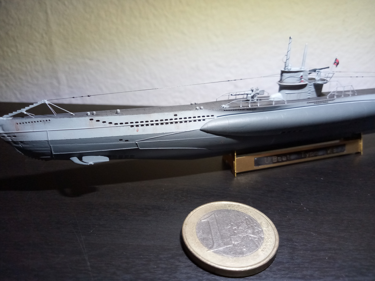 Sehr schick. :thumbup: Vielleicht kannst du ja noch ein Foto machen, wo man die Größe des U-Boot mit einem Schlachtschiff vergleichen kann :o