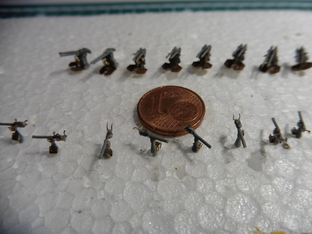 Die schweren MG´s 10 x und die 37 mm AA Gun 8x sind fertig . Als nächstes kammen die 4x 200mm AA vierlingsflack dran