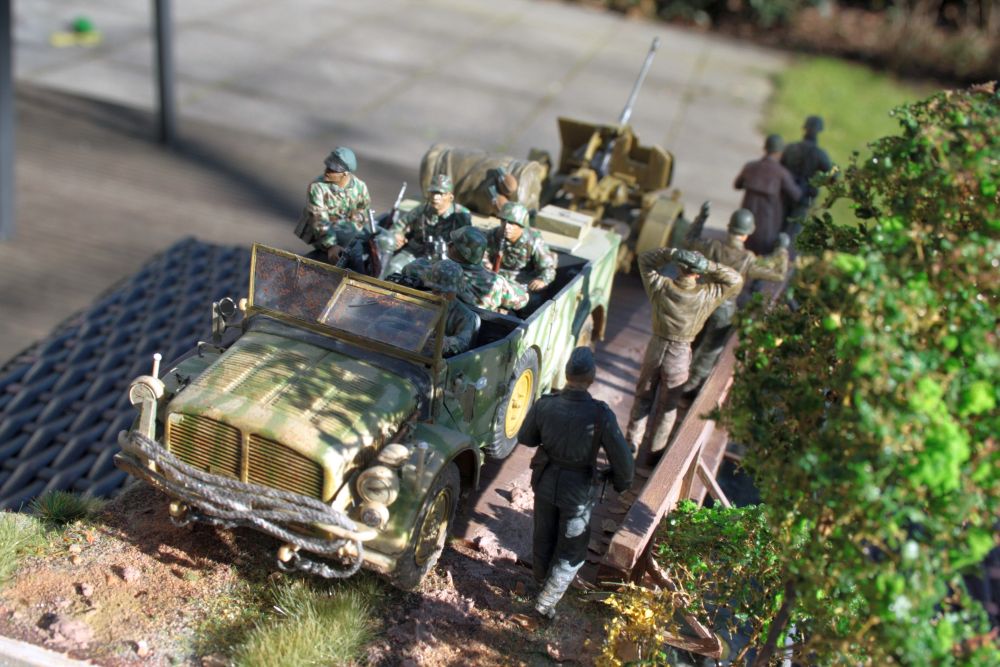 Verarbeitet habe ich den alten Horch von Tamiya mit Eduard-Ätzteilen und die Miniartfiguren aus dem Satz voher der Titel stammt.