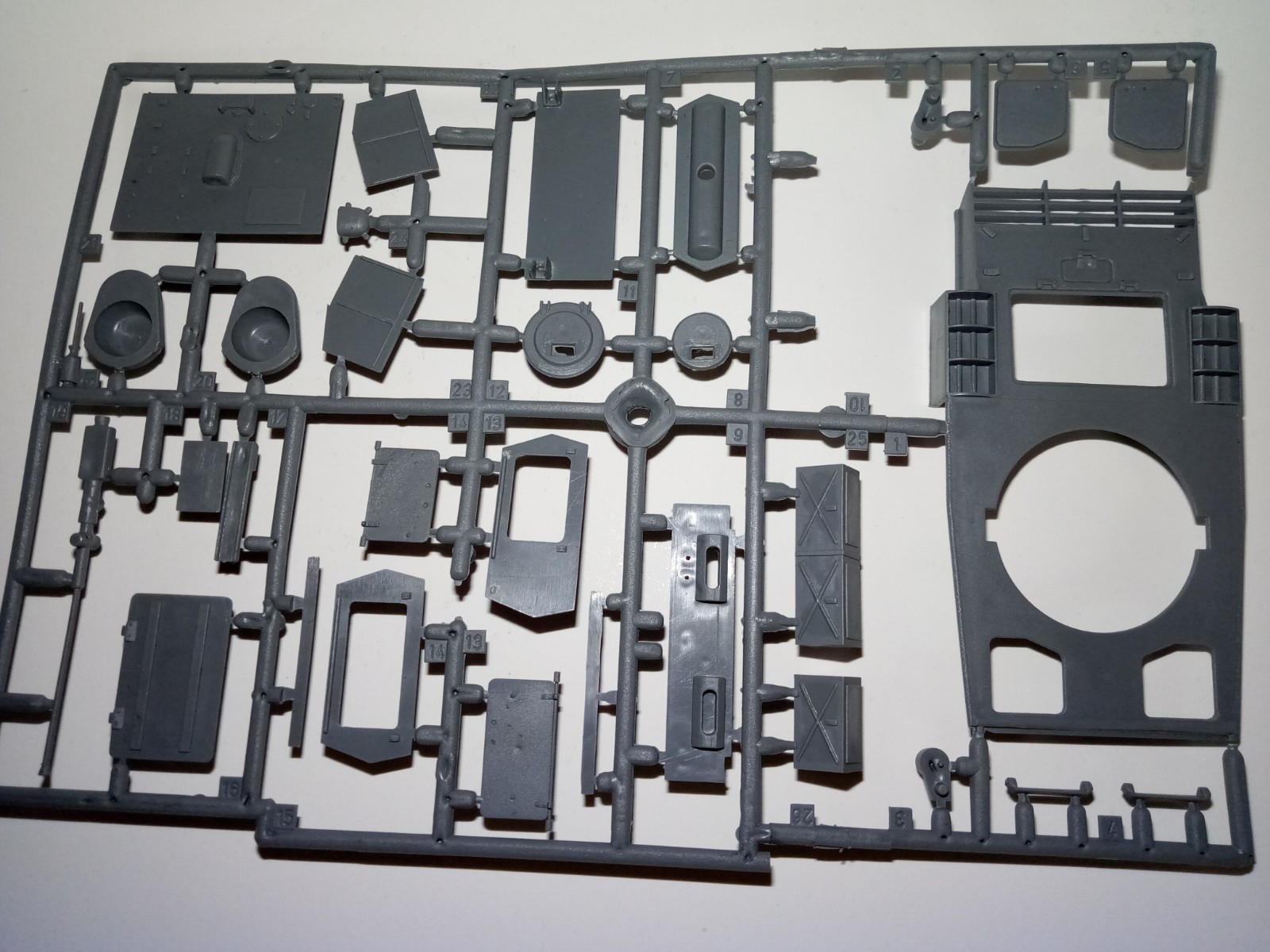 Die rund 414 Einzelteile sind auf 12 Rahmen aufgeteilt, wobei 2 doppelt (Laufwerk)