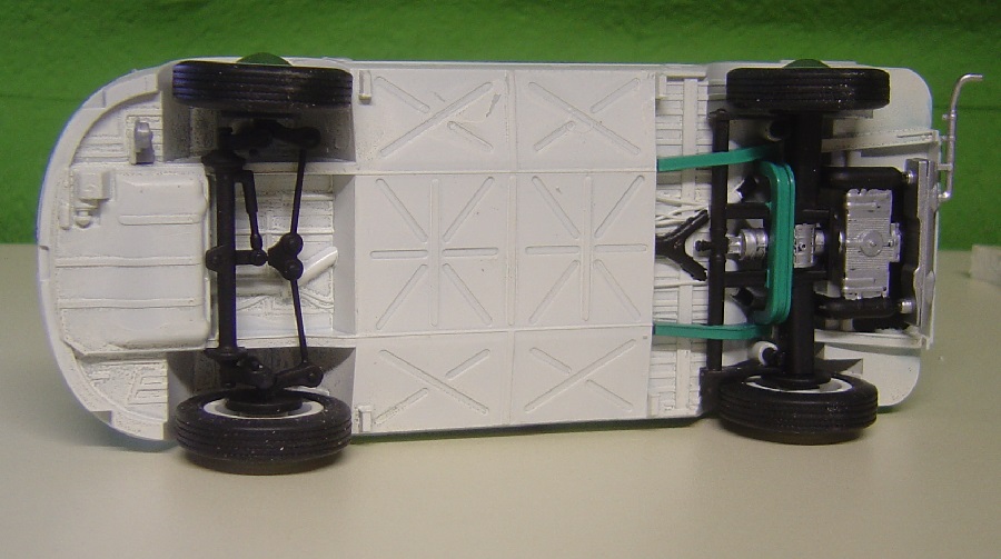 Aus Ehrgeiz wurden die Räder drehbar gebaut, sprich man kann das Modell "schieben". Zwar stehen die Felgen still, aber die Reifen dreht sich.