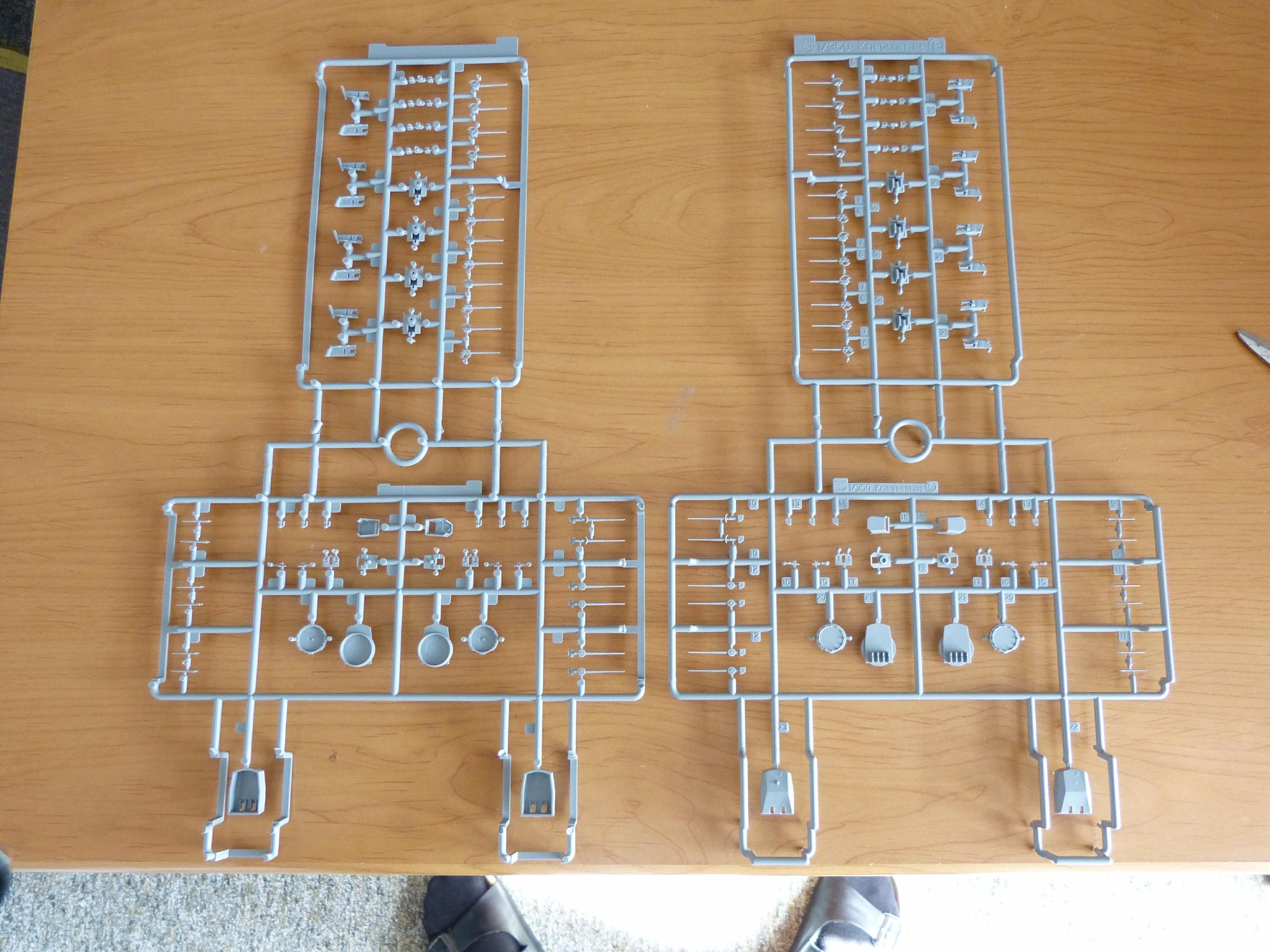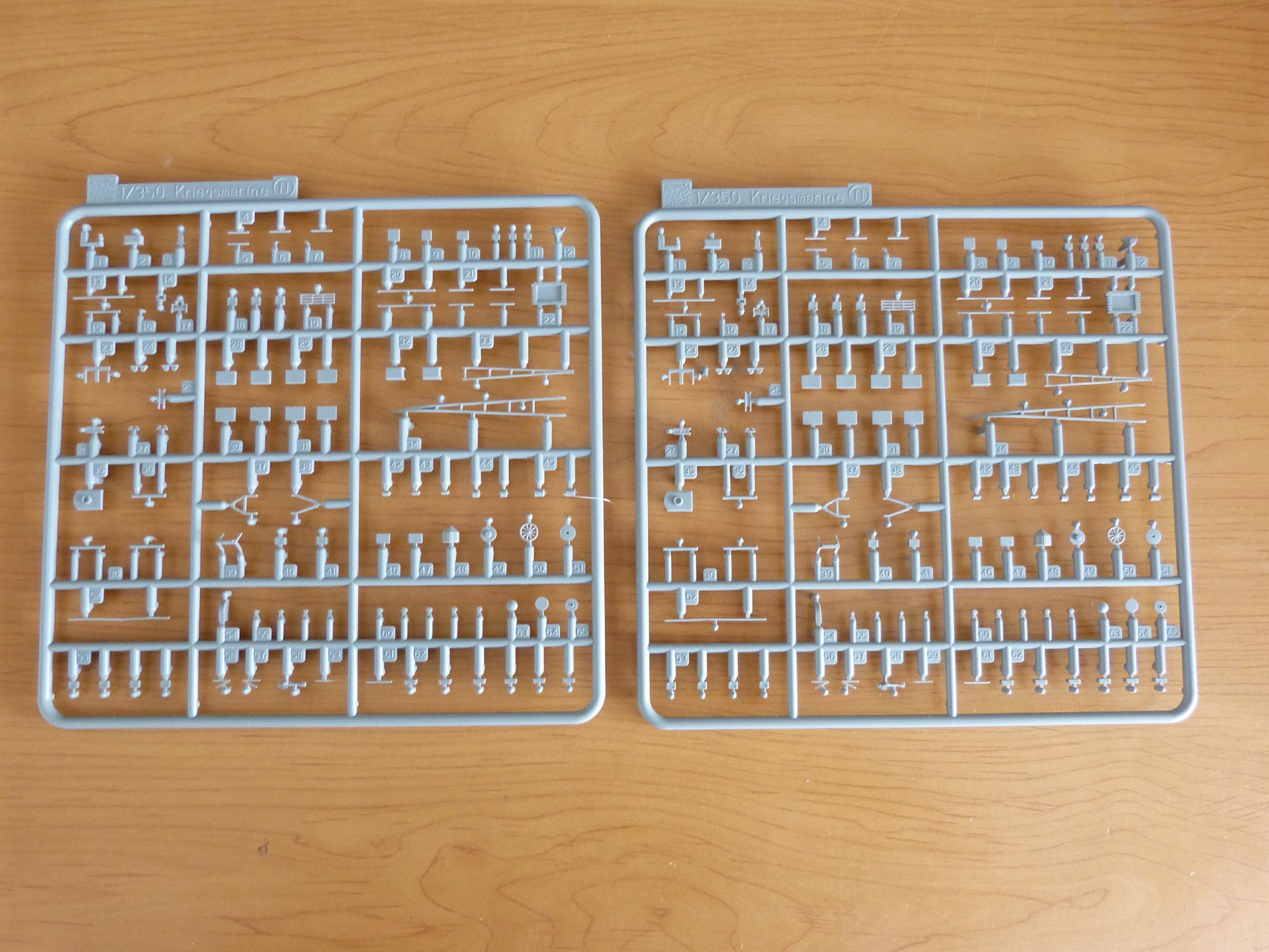 Die Gussäste sind sehr filigran gearbeitet und erfordern nur äußerst geringen Nachbearbeitungsbedarf. Selbst die Geschützrohre der 28er, 15er und 10,5er sind sehr fein und detailliert, so dass man nicht zwingend auf Messing-Pendants zurückgreifen muss.