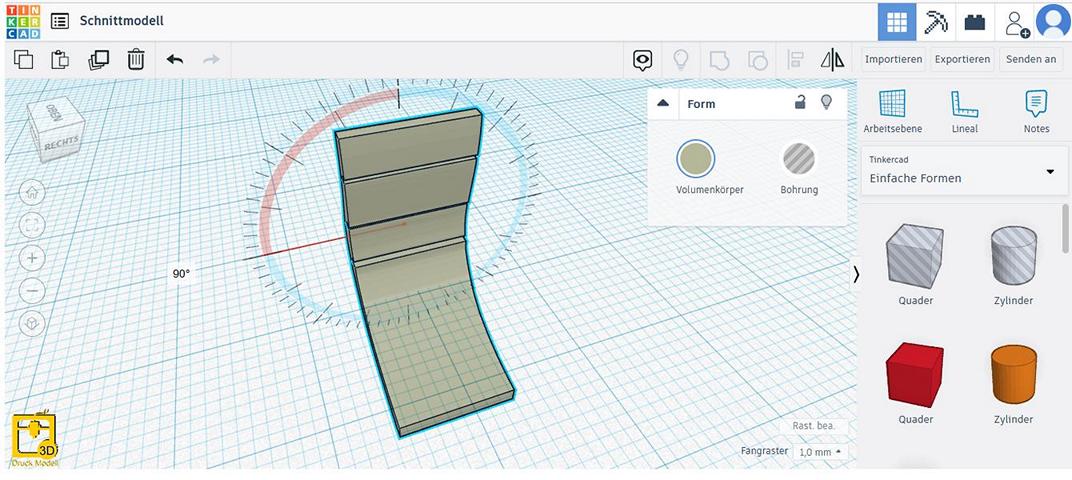 Das geht mit dem Tool über dem Modell, entweder 90 Grad eingeben oder mit der Maus auf 90 drehen: