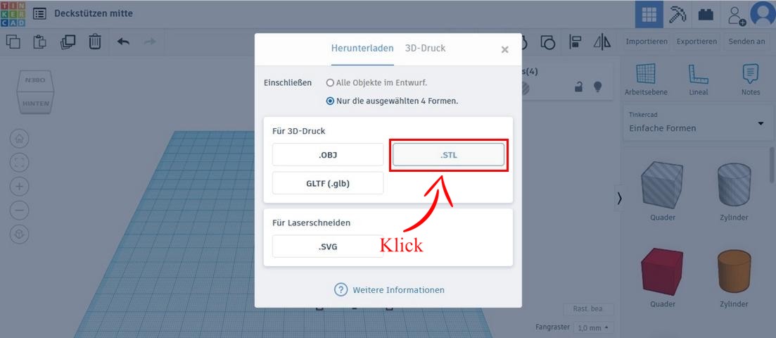 Wenn es mir gefällt dann markieren, exportieren und als STL abspeichern wohin man es haben will