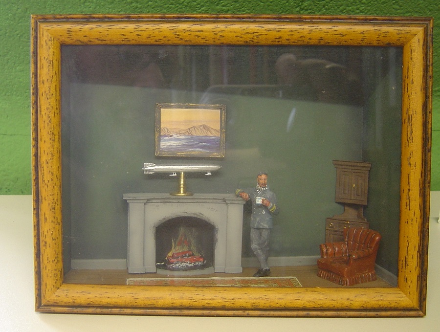 Ich habe vor einiger Zeit ein paar Zinnfiguren gekauft. Der erste ist nun der Zeppelin Kommandant 1:32geworden. Der Hersteller ist mir nicht bekannt. Der Sessel, der Schrank und das Bild sind von Verlinden.
