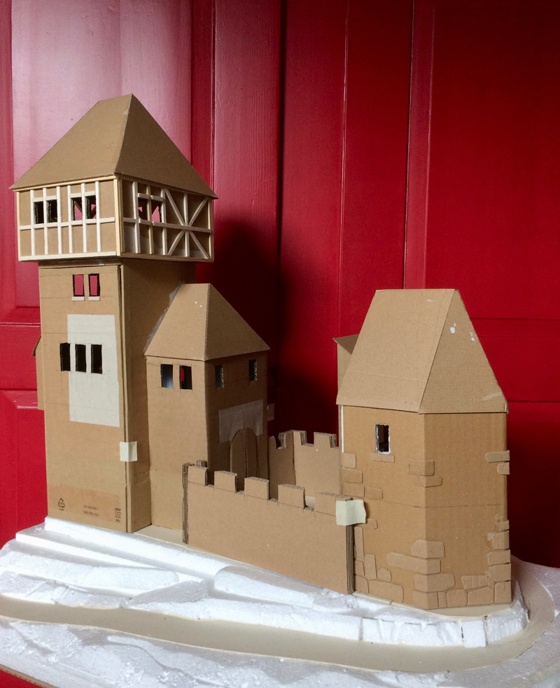 Orientiert habe ich mich an der Burg Rotberg, einem rekonstruierten Wehrbau aus den 13. Jahrhundert bei uns im Baselbiet.