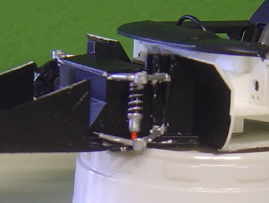 Die "flexiblen Hydraulikschläuche" bestehen aus 0,25er Angelschnur,ein Fehler wie sich im Nachhinein herausgestellt hat. Angelschnur ist zwar sehr flexibel, lässt sich aber nur schwer in kleine Radien biegen und formstabil halten.