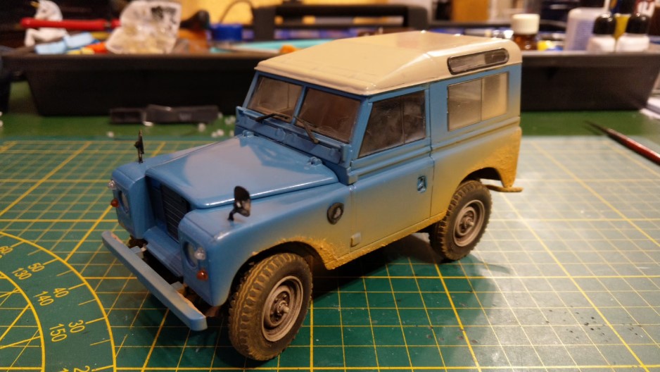 Nicht sicher bin ich mit dem Alufarbenen Rahmen. Laut Bauanleitung soll er so aussehen. Ich weiß, der Land Rover ist komplett aus Aluminium gefertigt. Aber es sieht komisch aus. Vielleicht denke ich mir hier noch was aus.
