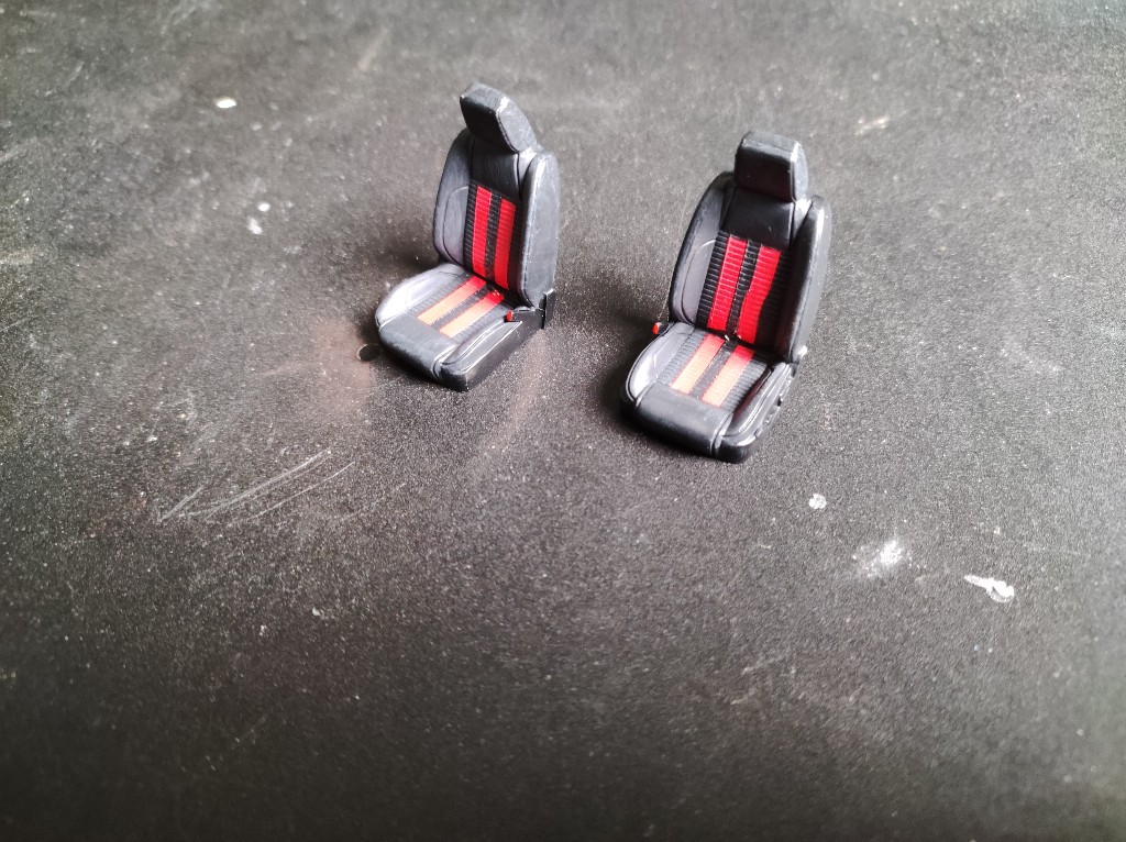 Dann habe ich auch die Sitze bereits lackiert und mit den Decals versehen, auch ein kleinwenig aufgehellt. Insgesamt sieht es wohl ganz vernünftig aus