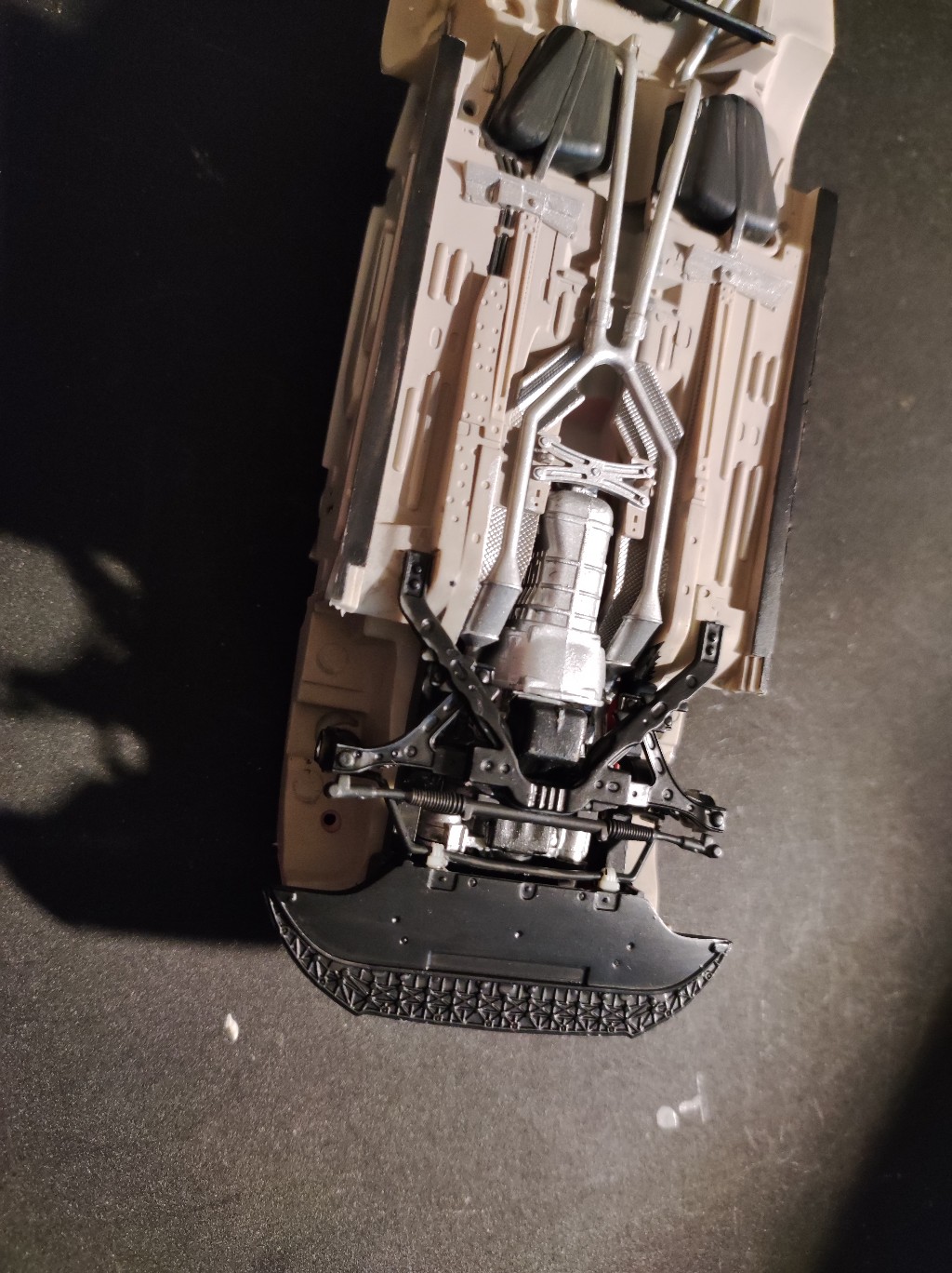 Einzelne Teile müssten bemalt werden, andere angebracht und bemalt werden. Viele kleinere Teile wurden ebenfalls an gebaut. Wie z.b. der Unterbodenschutz vom Motor