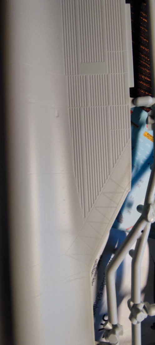 Was mir am Modell sofort aufgefallen ist, sind die wenigen Grate, die sich an den Bauteilen finden. Dazu eine sehr schöne Detaillierung, ich habe das mal versucht auf den Bildern festzuhalten. Da es ein Modell ohne jede Bewaffnung ist, darf es auch ins Wohnzimmer :lol: