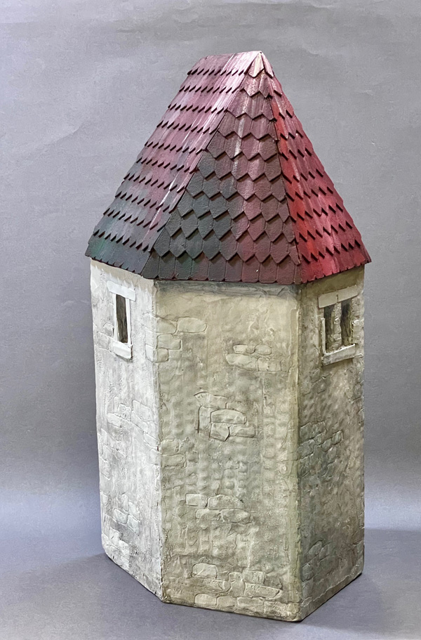 Erdgeschoss mit Verliess, Küche, Wohnraum mit Klo-Erker und Dachlaube.