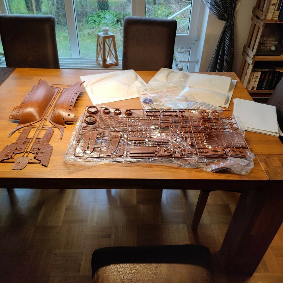ich biete euch dieses schöne Modell an. Es stammt aus dem Nachlass eines Sammlers. Es handelt sich um den ungebauten Modellbausatz von Revell "05620 Spanish Galleon".