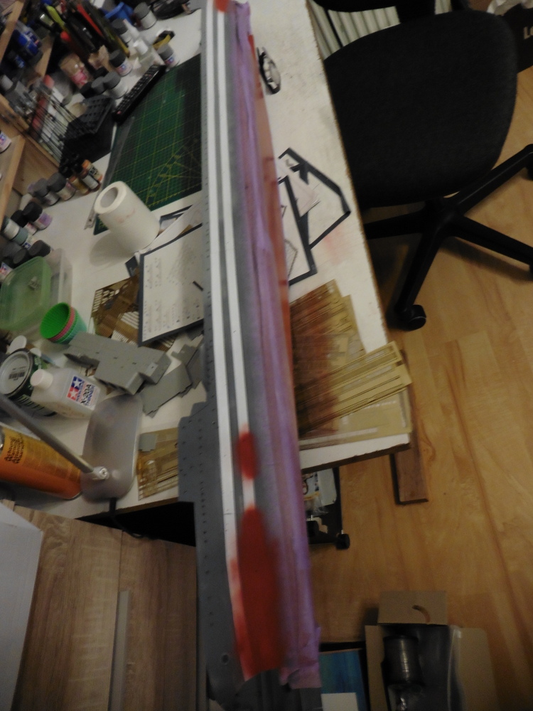 Nun gehts mit dem Rumpf weiter . Wie erwähnt wurden am Rumpf etra Metallstreifen angebracht .