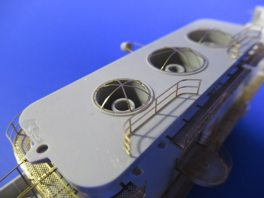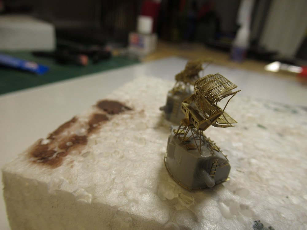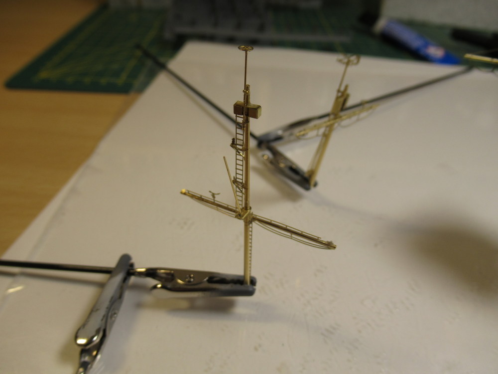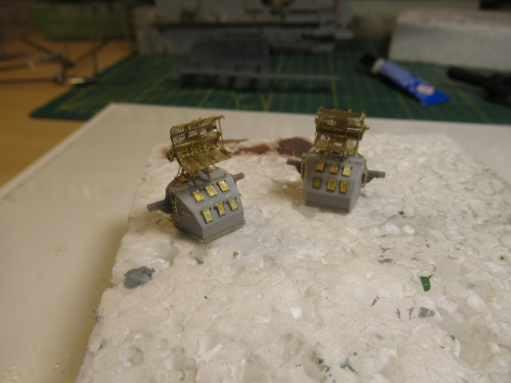 Die Masten und der Turm sind gut geworden . Die vordere Radaranlage ist auch ok ... die hintere hat nicht so gut geklappt . Sollte aber wenn gebrusht und integriert nicht sonderlich auffallen hoffe ich .