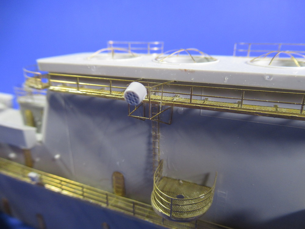 Wo ich dann schon bei der Insel dabei wa , sollte die natürlich auch komplett fertig werden . Sprich die Radaranlagen / Antennen/ Mast müssen erstellt werden . Diese werden erst noch nicht verbaut , aber es ist natürlich schon schön wenn die fertig sind .