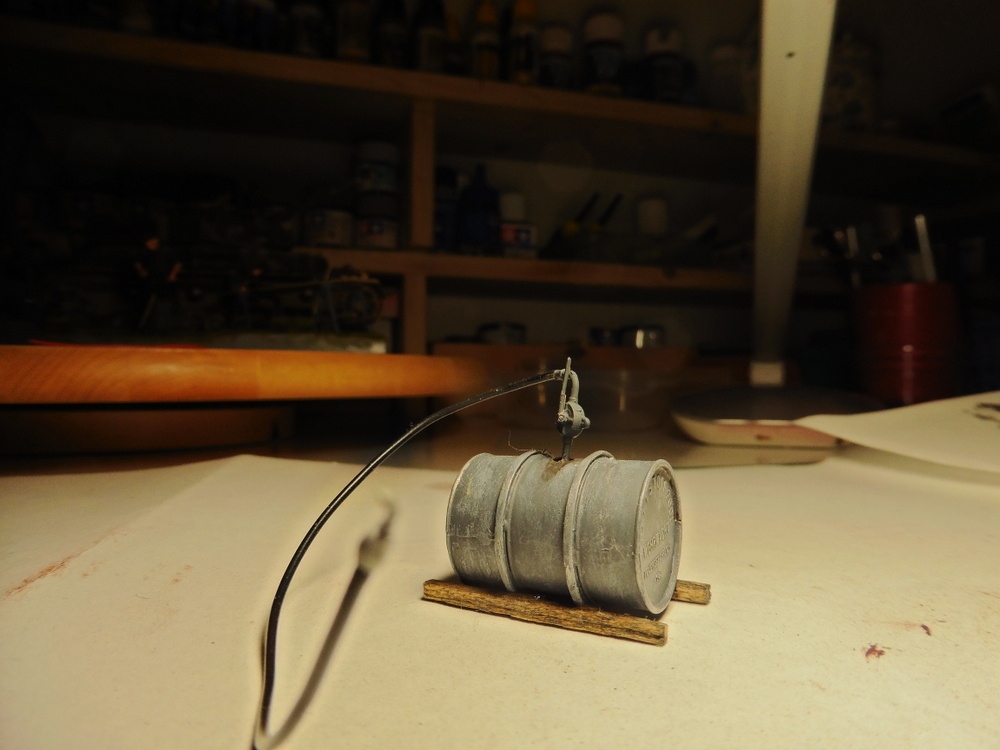 ich hatte mir ja noch ein Zubehörset Werkstatt gekauft . Ich wollte auf das Dio noch Kraftstofffässer / Ölfasser und Gasflaschenbrenner für den Schmied dazu stellen .