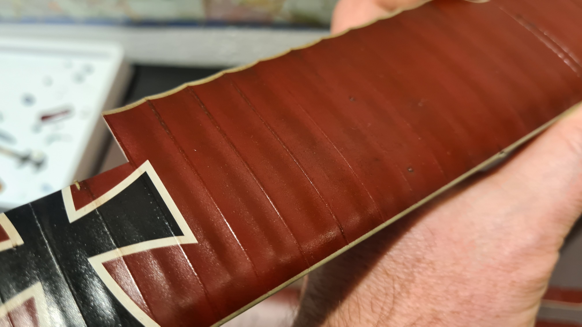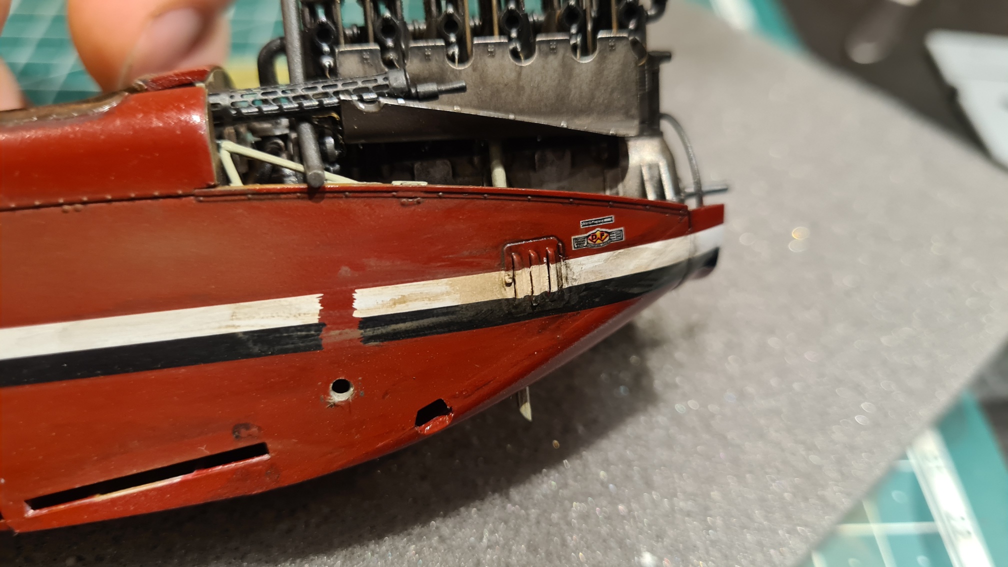 Es gibt einige Decals, die entlang blöder Konturen "geklebt" werden müssen. Hier z.B. der Überstand über die Kante: