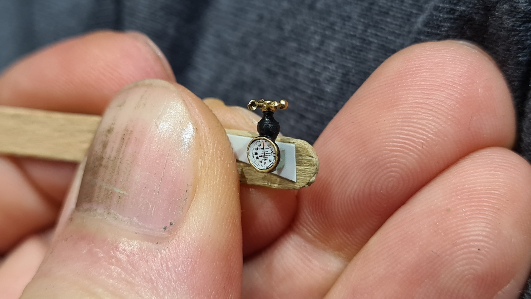 Hier das fertige Anemometer. Decal wurde eingeklebt und die Anzeige mit einem ordentlichen Tropfen Tamiya Glanzlack versiegelt: