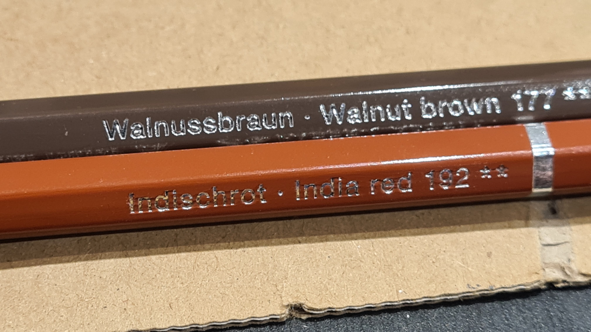 Mitt "Buff" vorlackiert und 24 gut durchtrocknen lassen. Danach wurde mit Aquarellbuntstiften gespielt, in meinem Fall waren es diese Farben:
