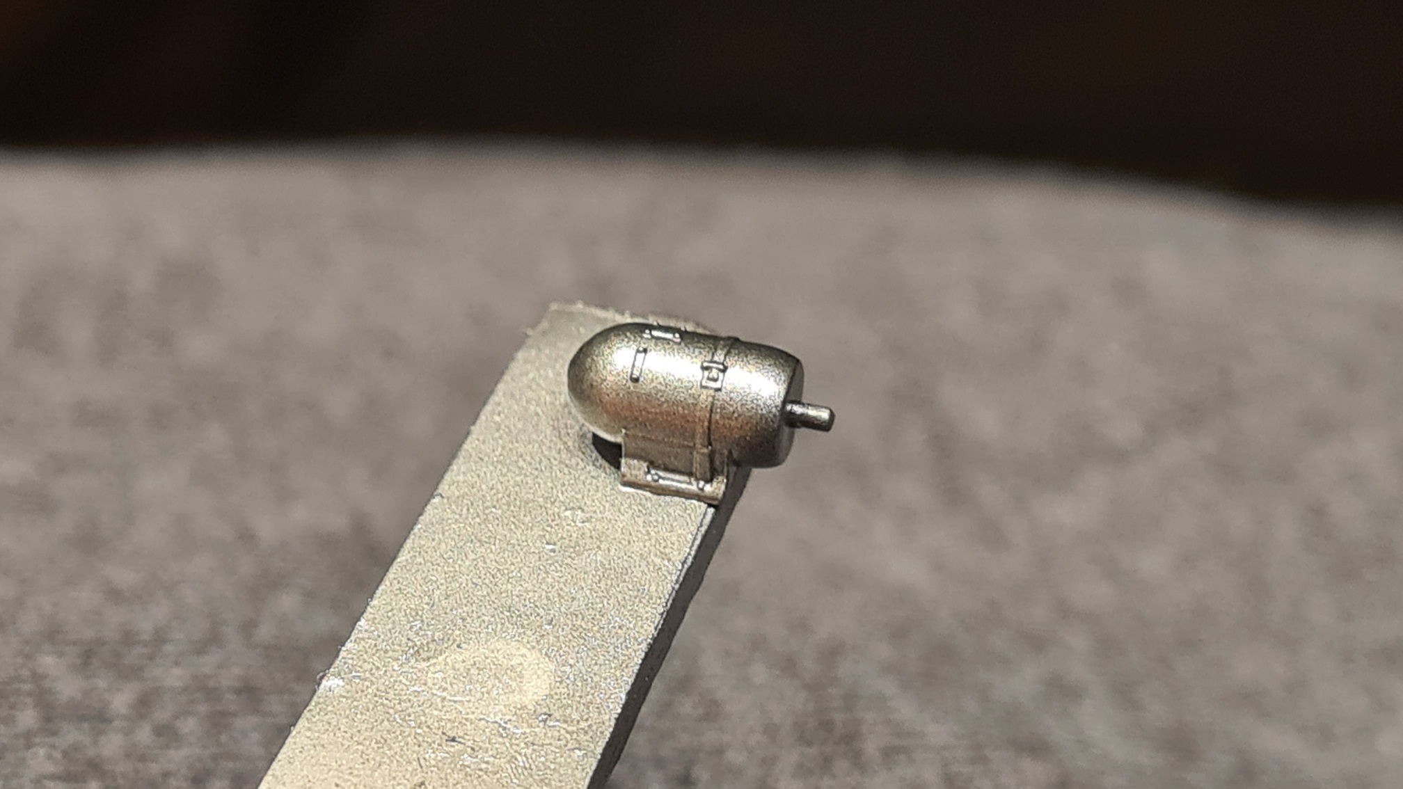 Der Body wurde ebenfalls mit Alclad 2 Microfiller gesprüht und im Wesentlichen so gelassen. Der Rand der Anzeige wurde aber mit Goldedding aufgehübscht.
