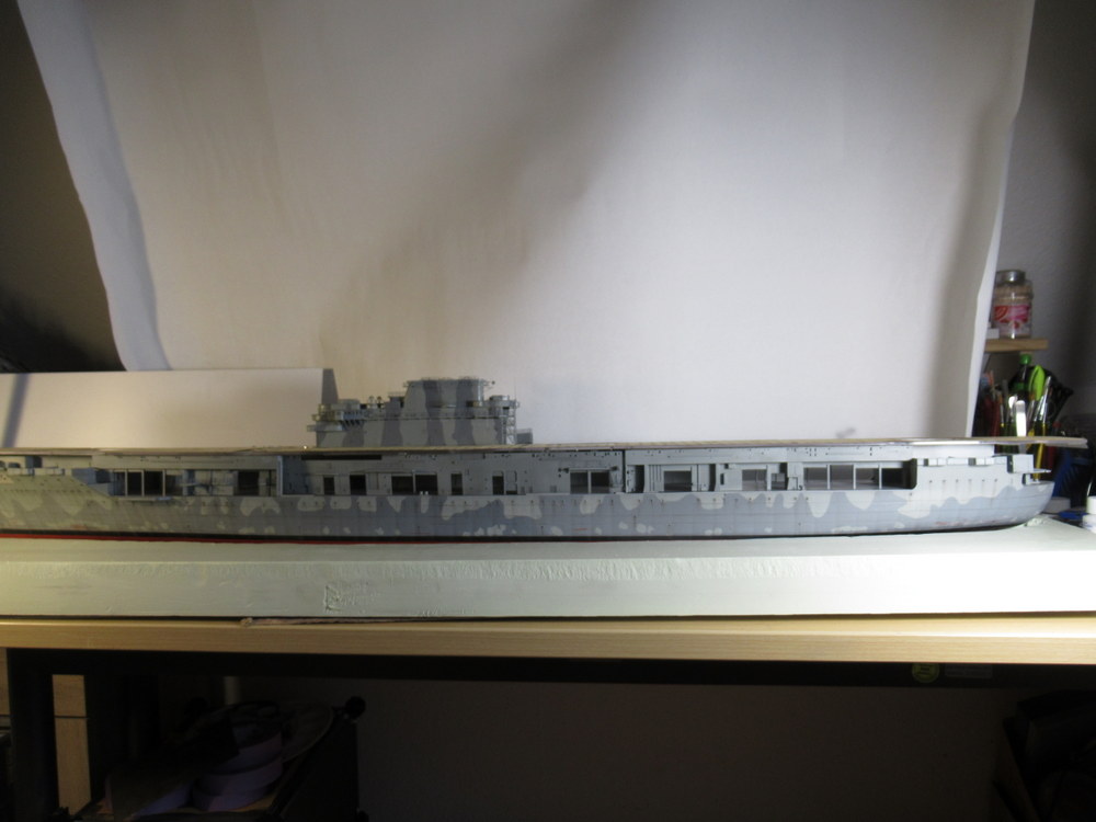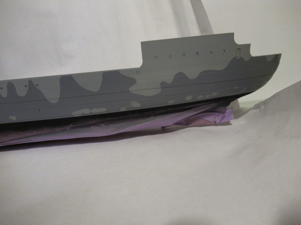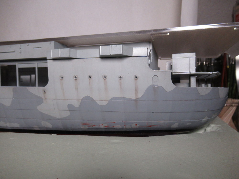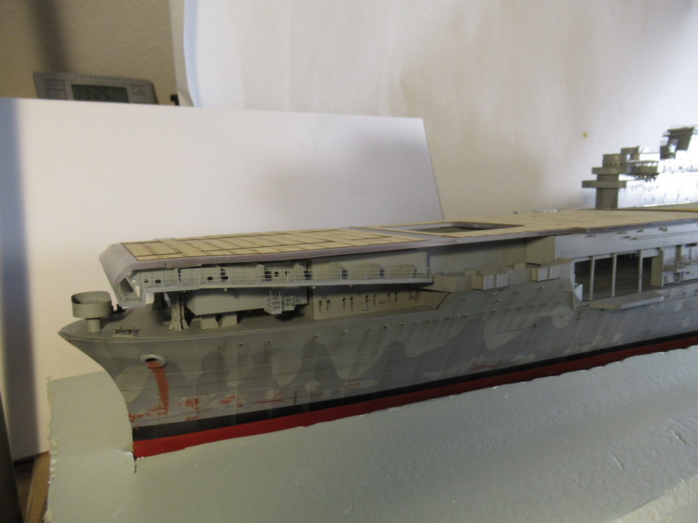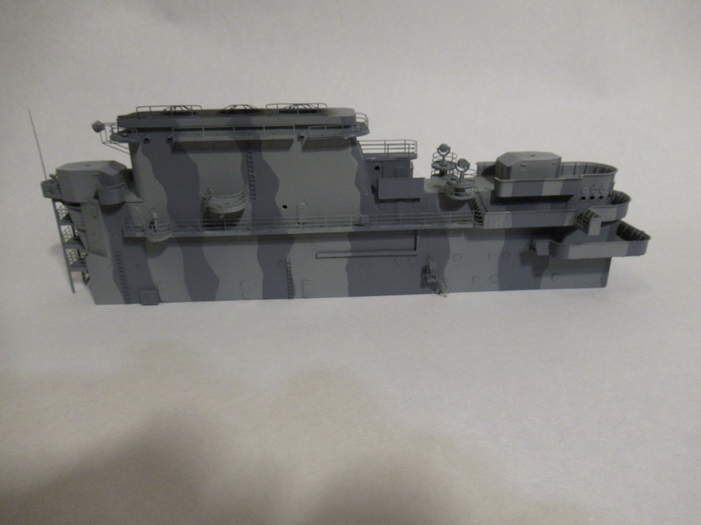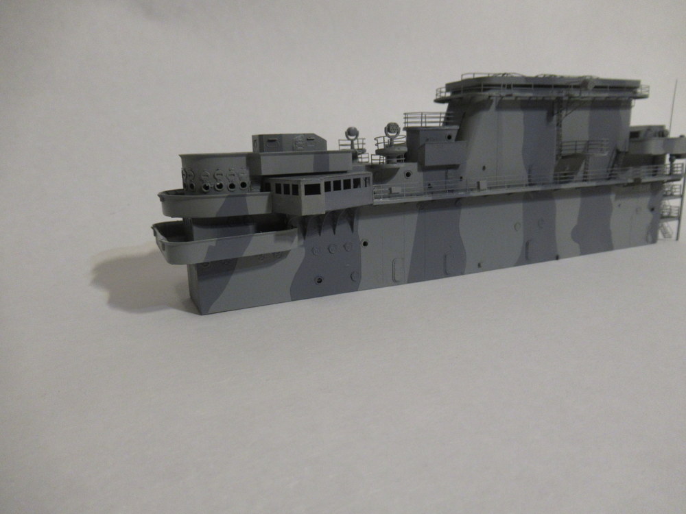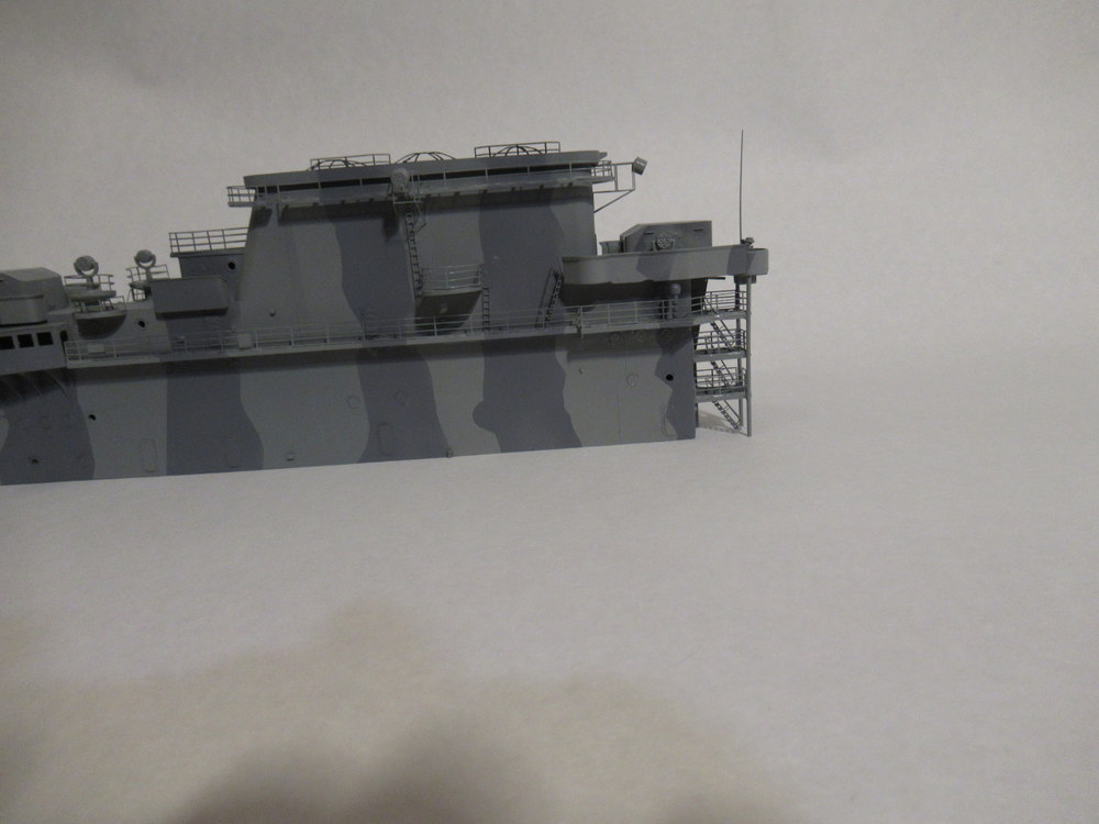 Die Insel wurde Maskiert und hat dann Ihren Tarnanstrich bekommen . War eine elendige abkleberei ,da ja die Laufstege etc schon dran waren . .