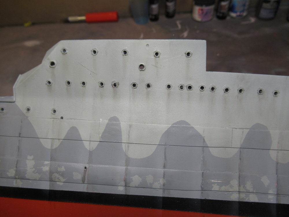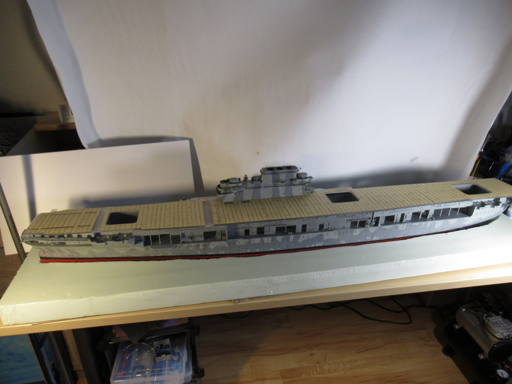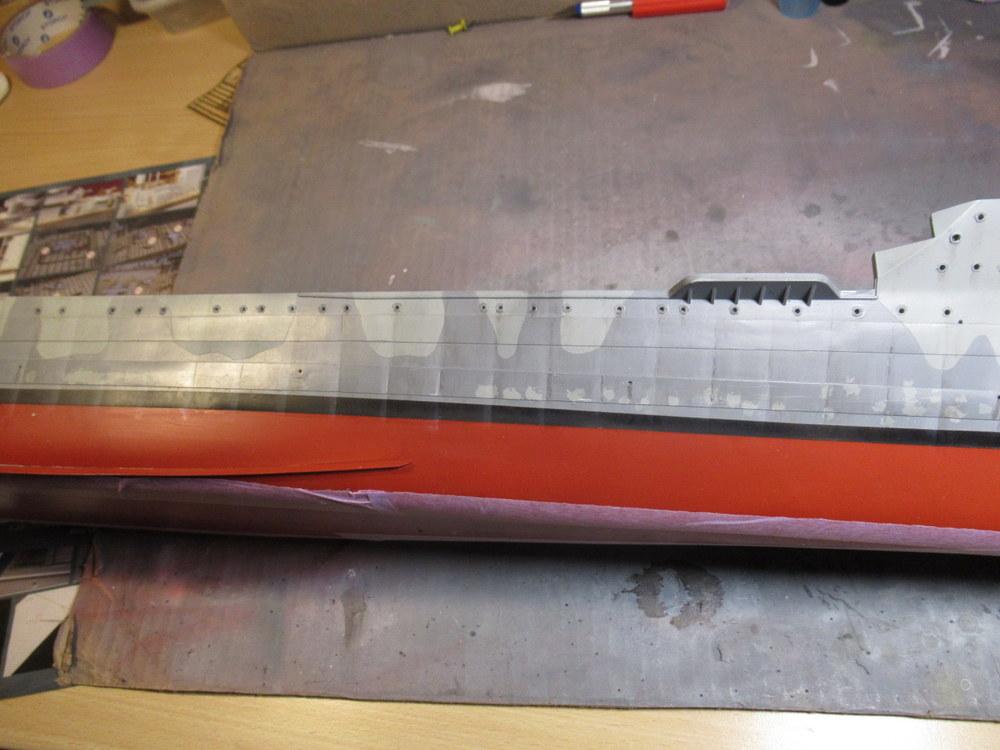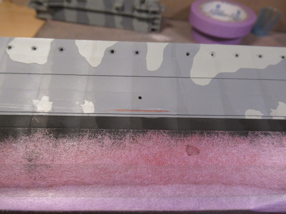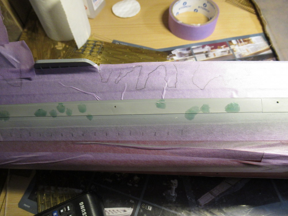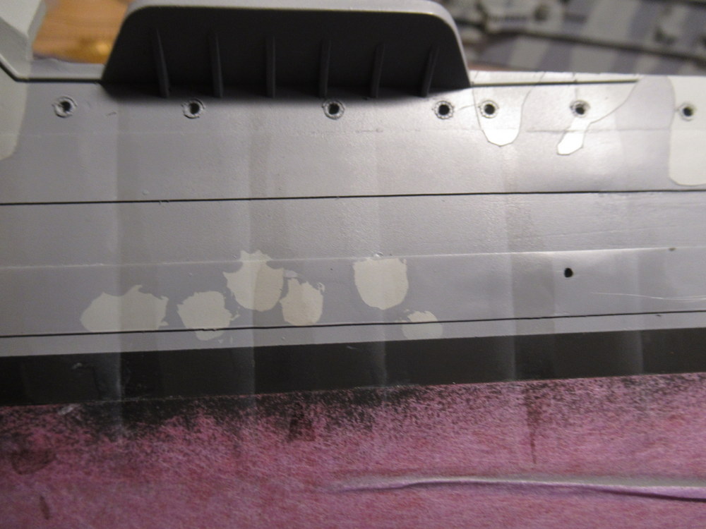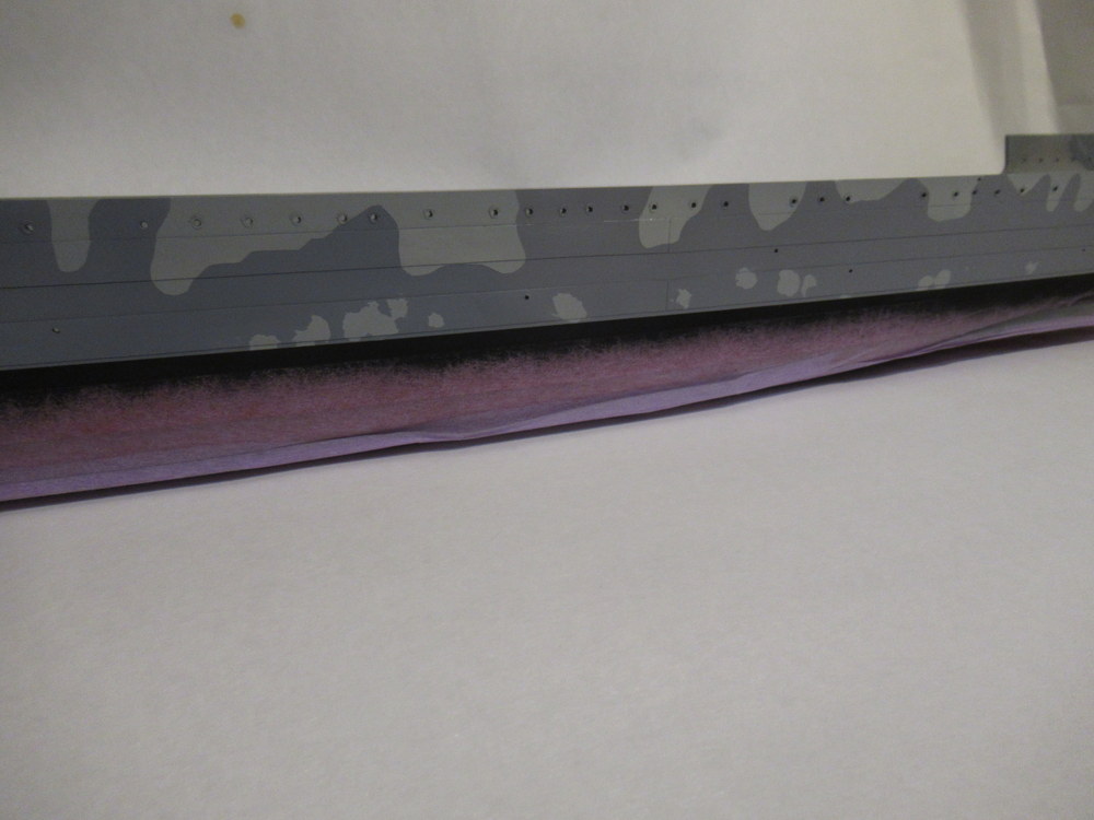 Die Insel wurde Maskiert und hat dann Ihren Tarnanstrich bekommen . War eine elendige abkleberei ,da ja die Laufstege etc schon dran waren . .