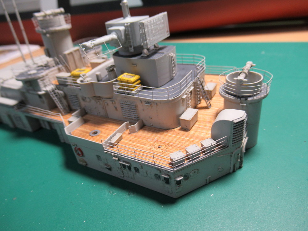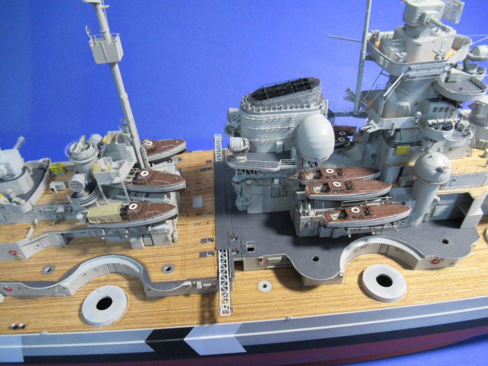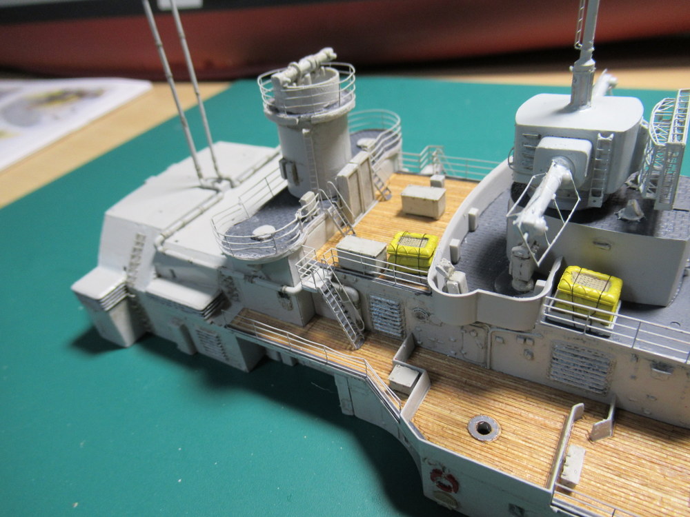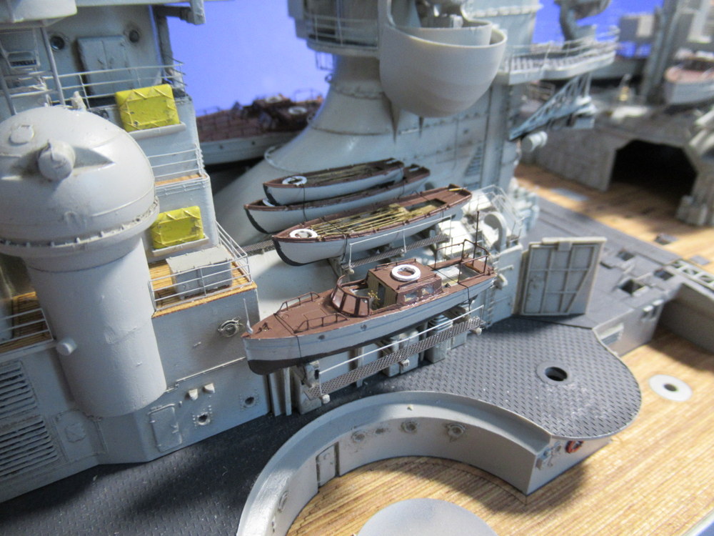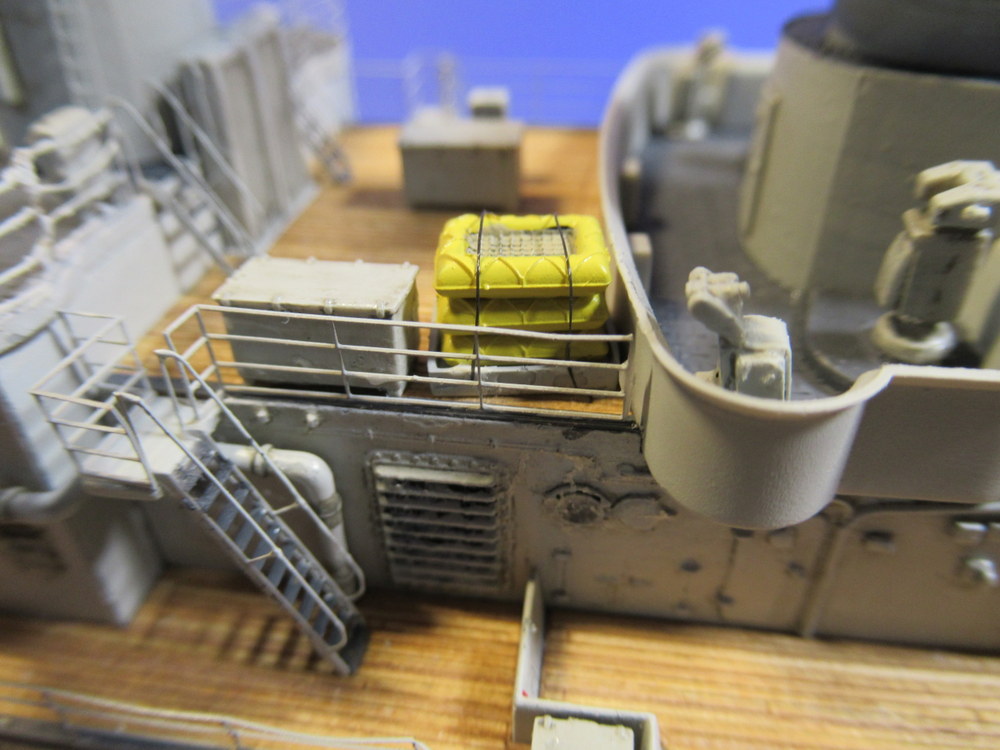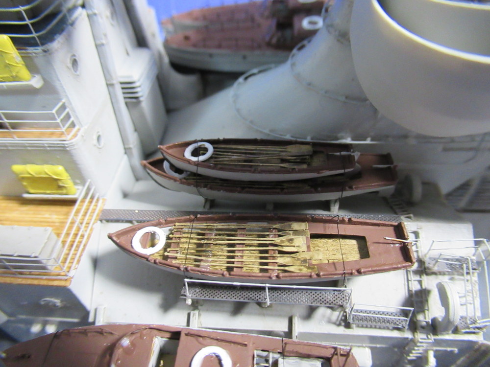 Dann kommt als nächstes der Flaggenstand. Darunter dann die Beiboote .