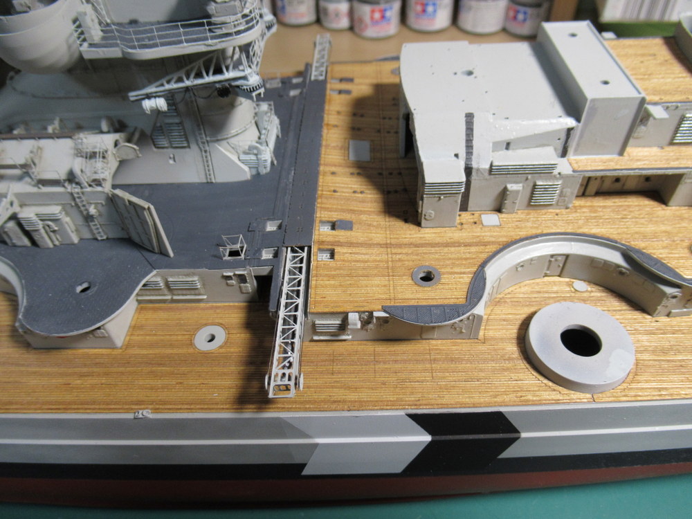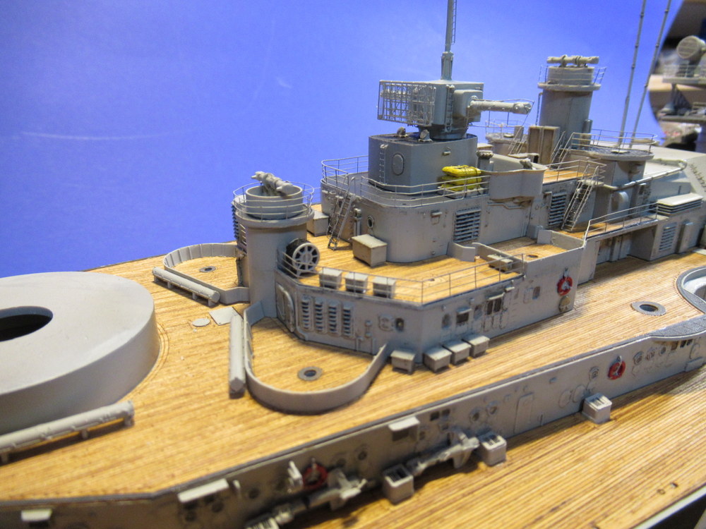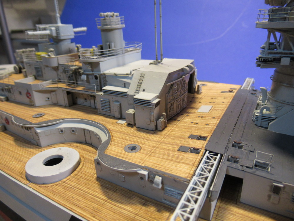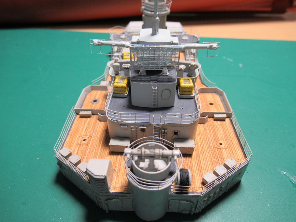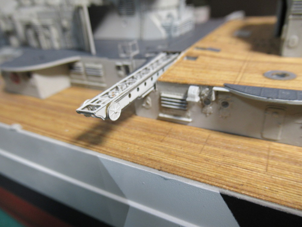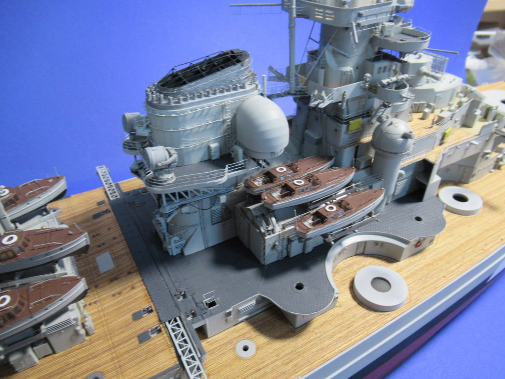Dann kommt als nächstes der Flaggenstand. Darunter dann die Beiboote .
