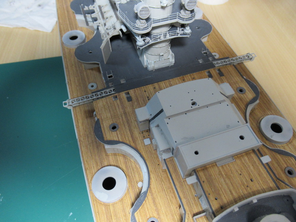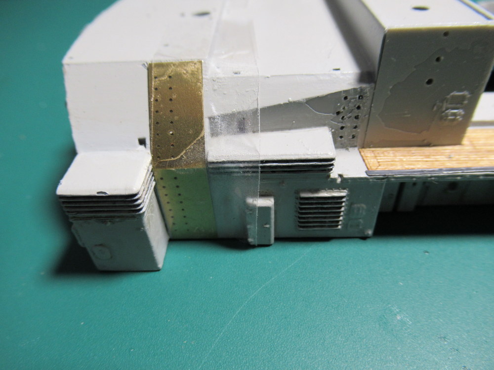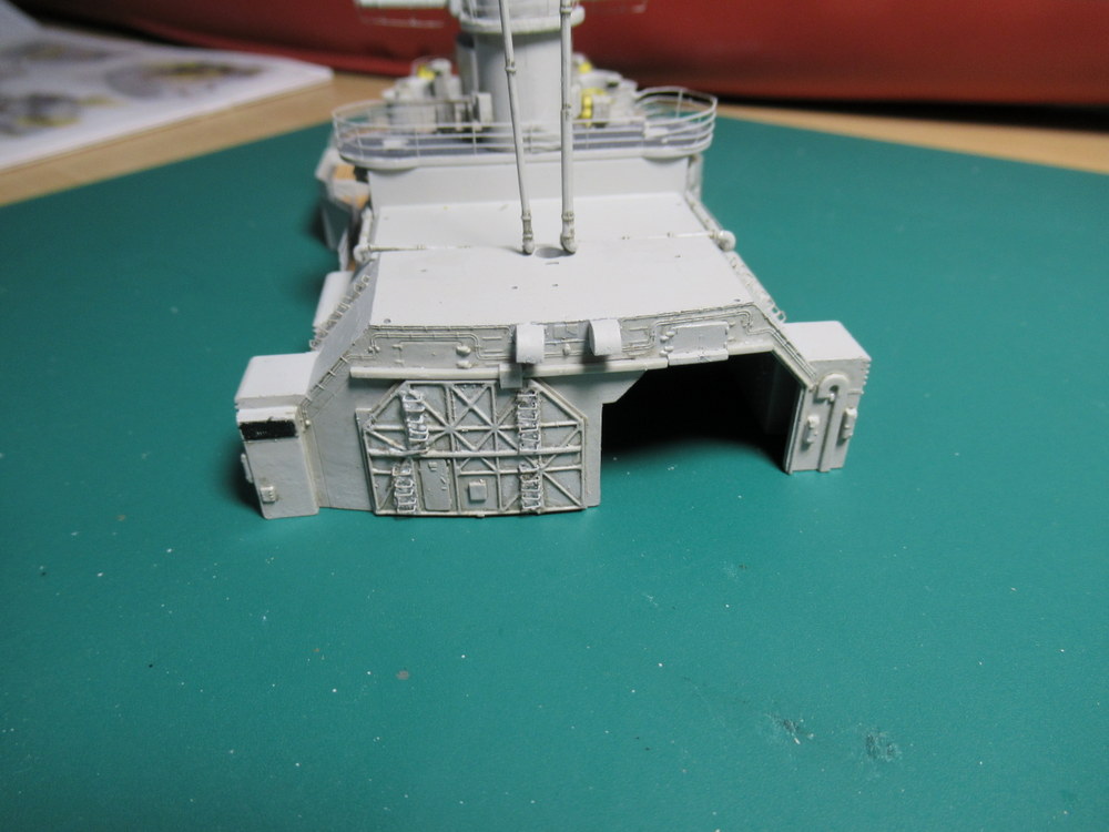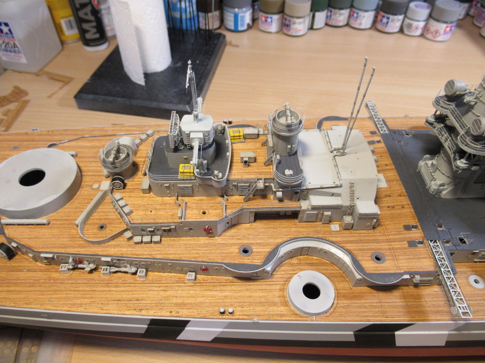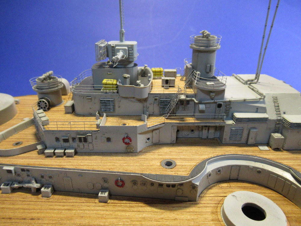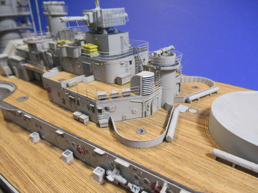 Dann kommt als nächstes der Flaggenstand. Darunter dann die Beiboote .