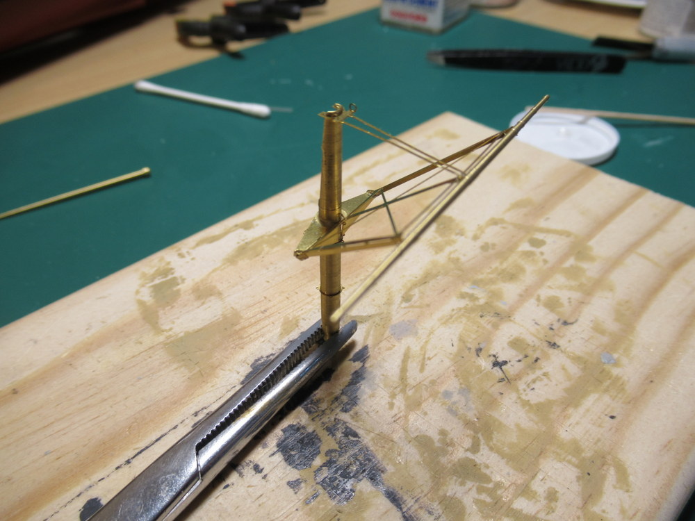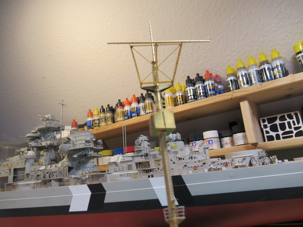 So... ich hab mit dem Hauptmast gekämpft. Geklebt getan und gemacht ... Alles drum und dran ... und schwubs rackt man den Tower doch einfach mal eben vom Basteltisch ... arrrrggg ...