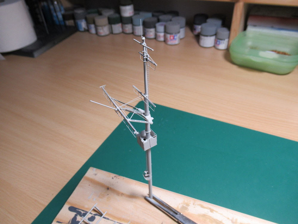 Zum Glück hab ich ja wieder Farbe von Lifecolor DKM 51 bekommen . Daher konnte ich vorhin den Mast auch schön mit der Airbrush lackieren . Auch ist das schön wenn man wieder neue Farbe hat und nicht mit den Resten haushalten muss