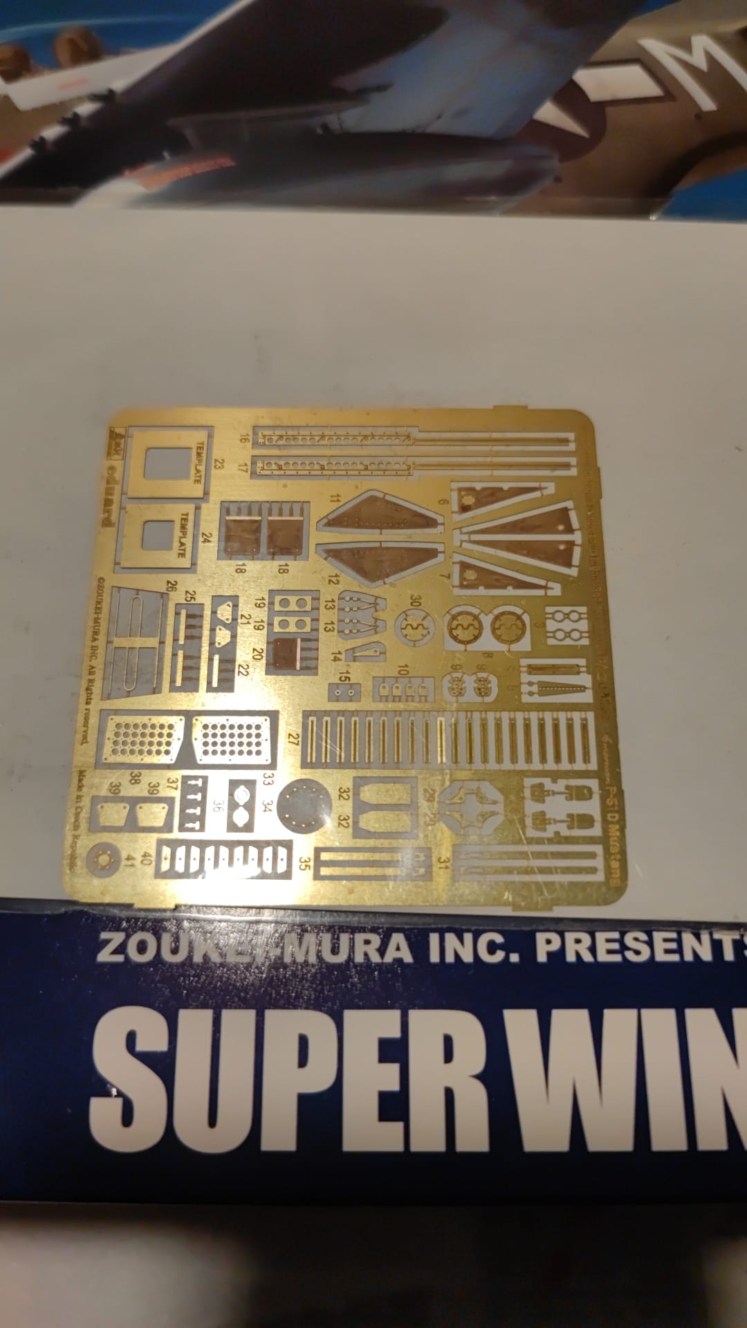 Die Zourei- Mura P51d in 1:32 ist gekommen, dazu das Metallfahrgestell, die PE Teile für Cockpit, Motor und Außen und last but not least die Reifen.