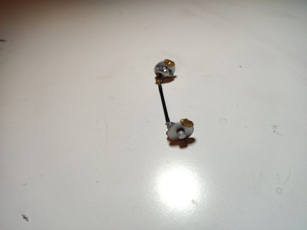 Sowie die Achse mit edlen goldenen Bremsklötzen