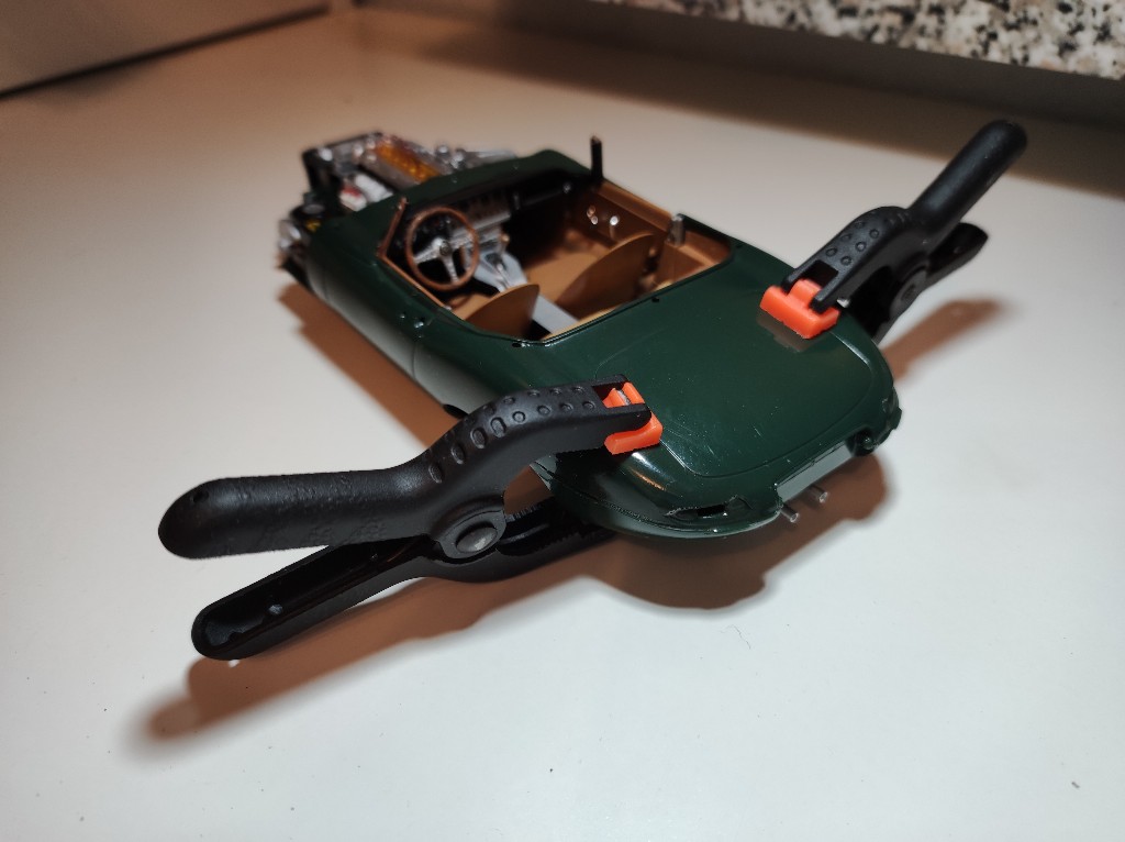 Und der Rahmen im Motor vervollständigen und mit Klemmen zum Halten überredet