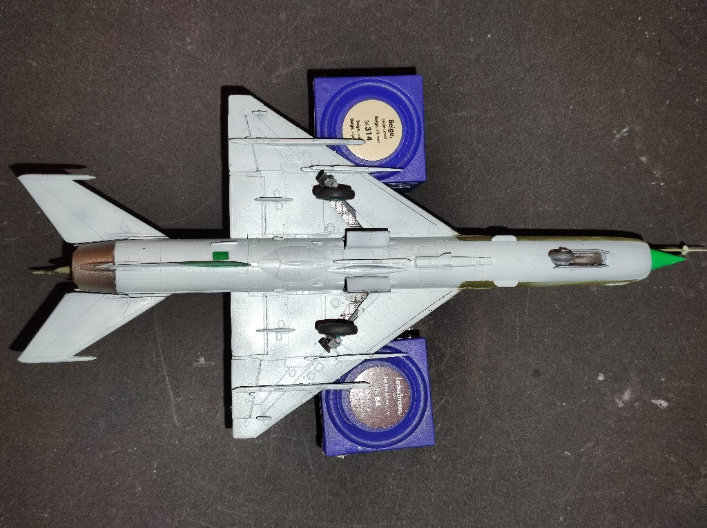 Auch wenn ich nicht weiß, ob das in der Realität so funktioniert hat, habe ich mich für eine Ausrüstung bestehend aus einem Mittigen 490 L Zusatztank, zwei R-13 Luft-Luft - Raketen und zwei RS-2US Fernlenkraketen entschieden.