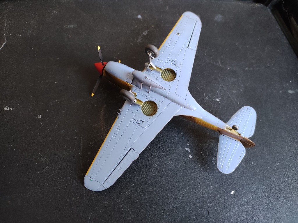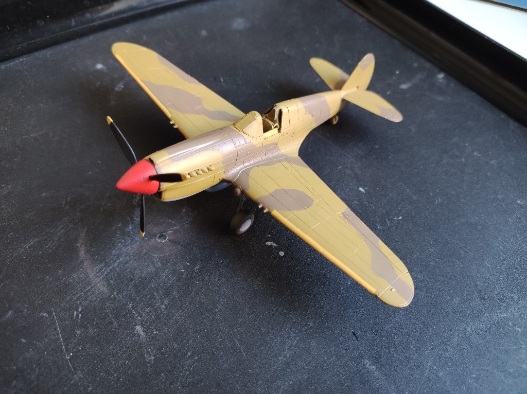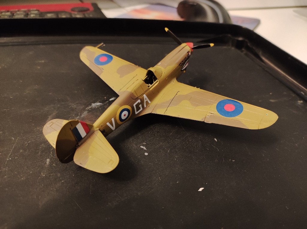 Den Rest aufgebracht, mit Decalsofot und einem Föhn an die Oberfläche angeschmiegt und eine Schicht Klarlack. So steht die Kittyhawk jetzt vor dem Weathering
