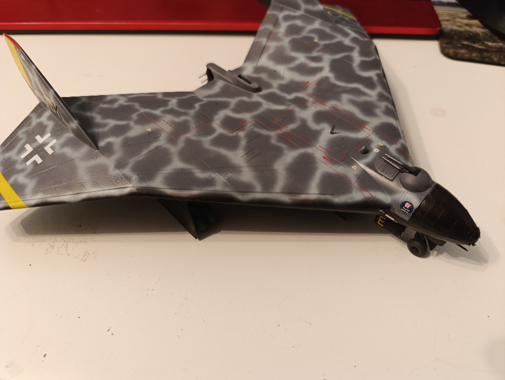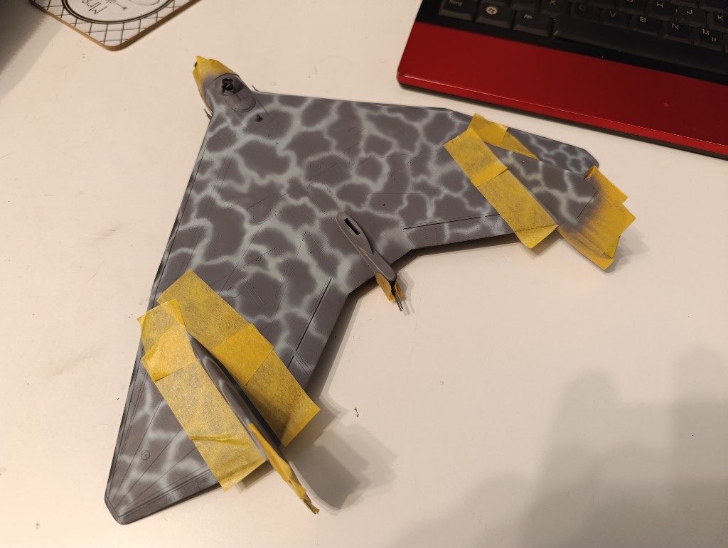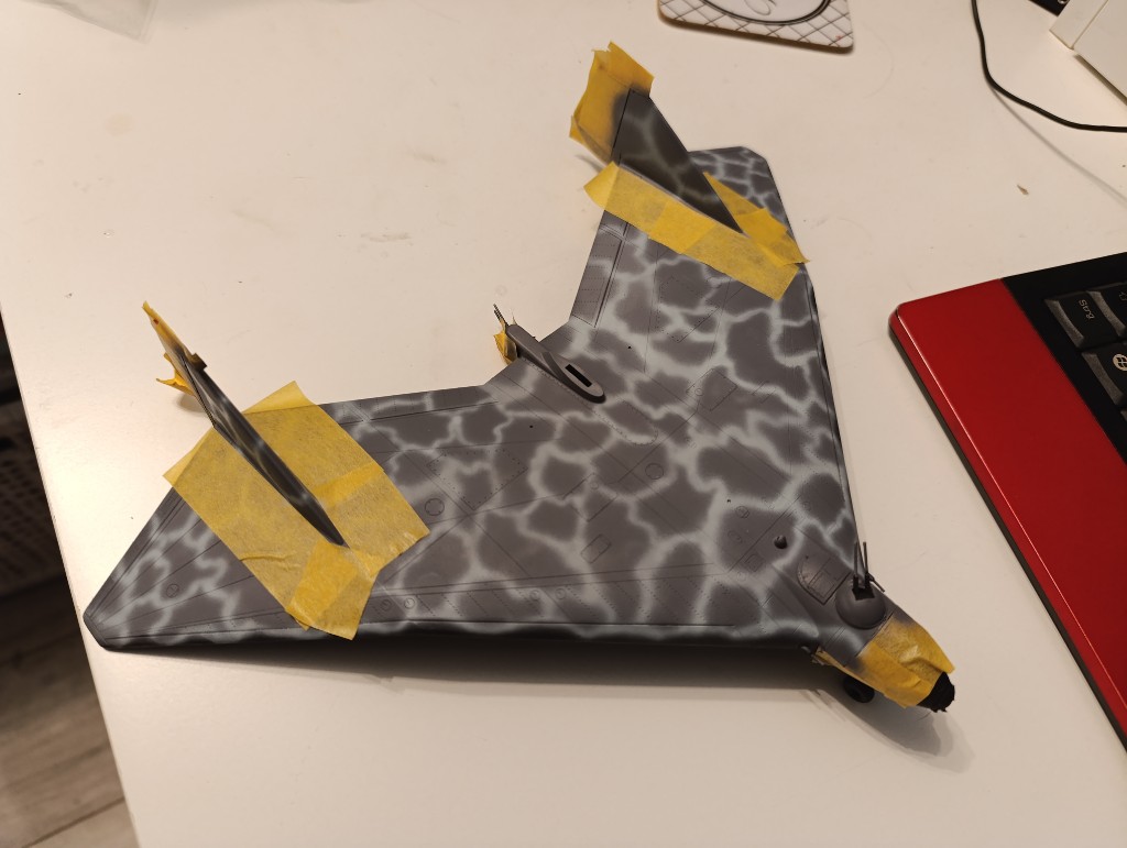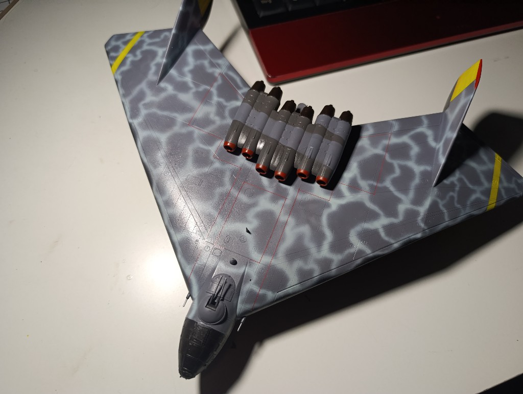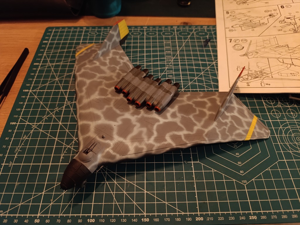 Danke für das Lob, aber bitte nicht zu sehr, ich hab die Tarnung nämlich nochmal neu gemacht. Die Tarnflecken waren mir zu Tentakelig und die Farbe hat ganz ungleichmäßig gedeckt. Und am Leitwerk sah es auch gar nicht gut aus. Daher habe ich mich entschieden nochmal neu zu machen.