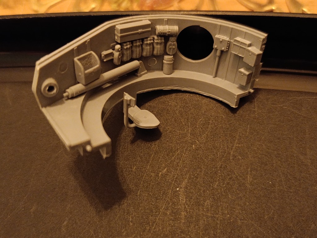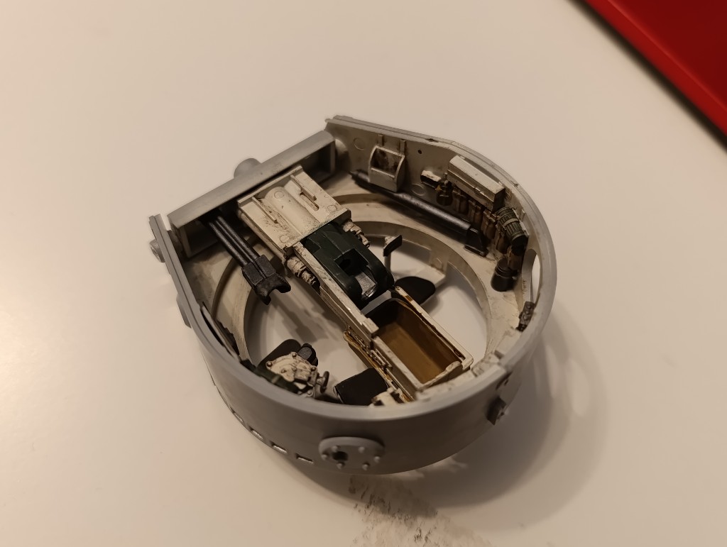 Jetzt tigern wir Mal langsam los und beginnen mit dem Panzer. Letztens sind ja schon erste Sitze entstanden, jetzt geht es an die Turmeinrichtung. Der Panzer besitzt keine vollständige Inneneinrichtung, sondern nur einen eingerichteten Turm.